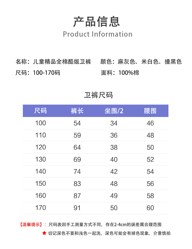 【综合】龙之涵 儿童春季休闲裤酷版卫裤 中大童加厚休闲裤 婴幼儿A类标准