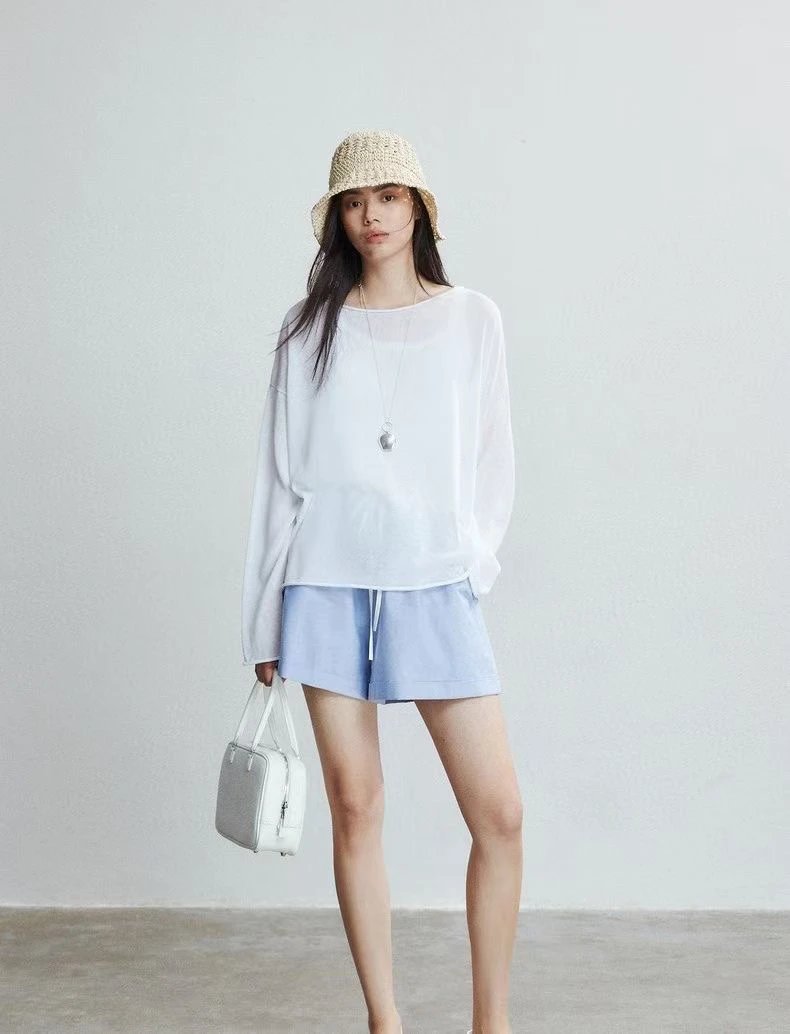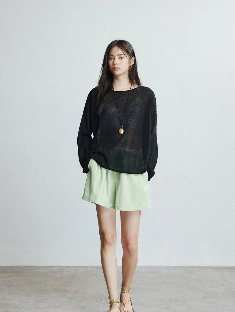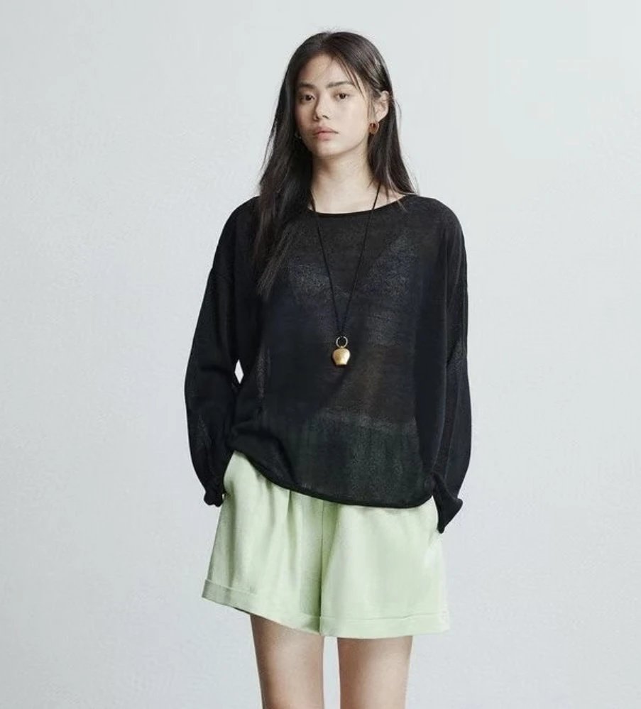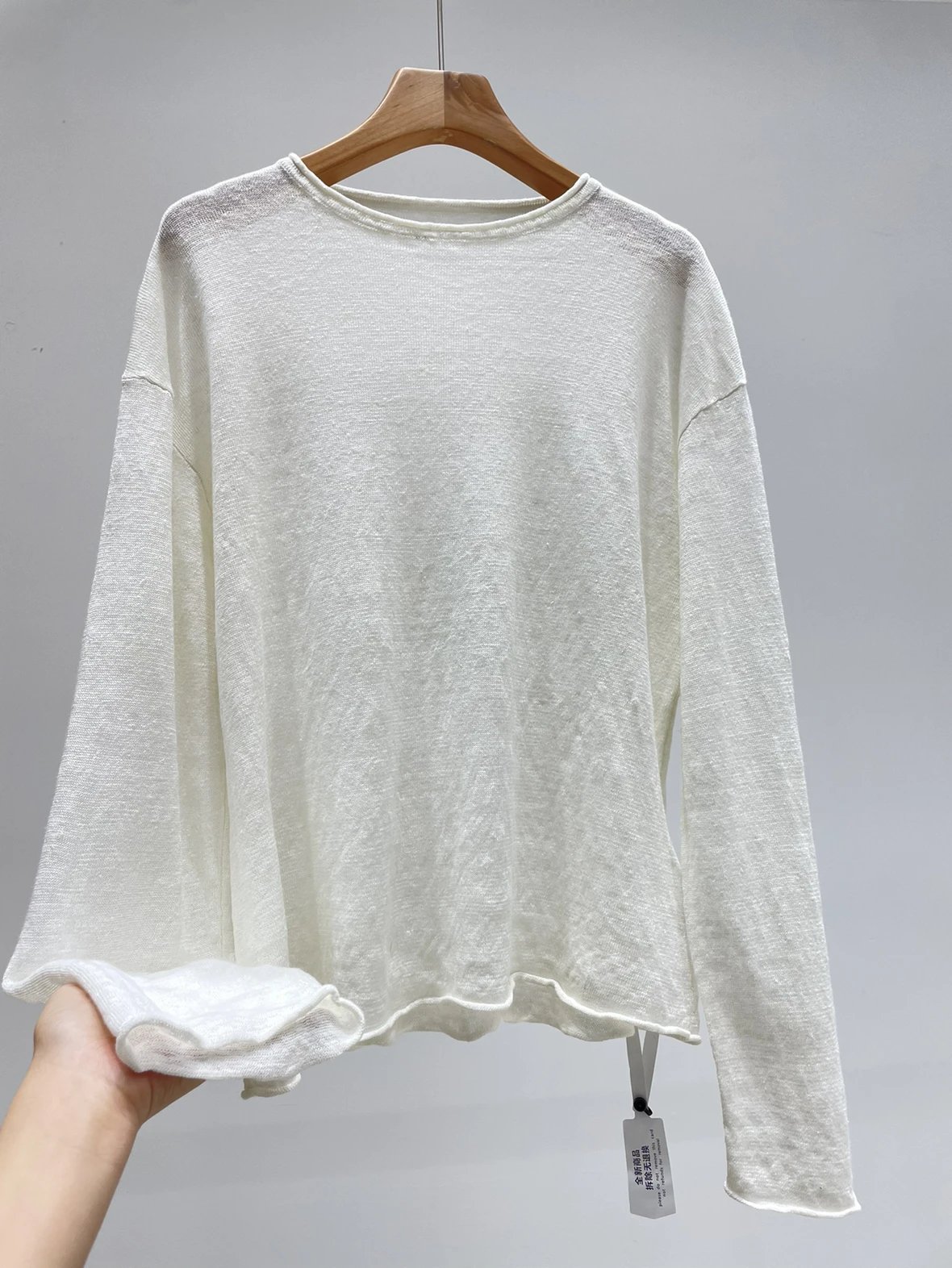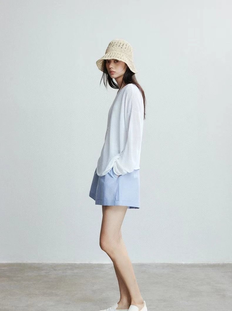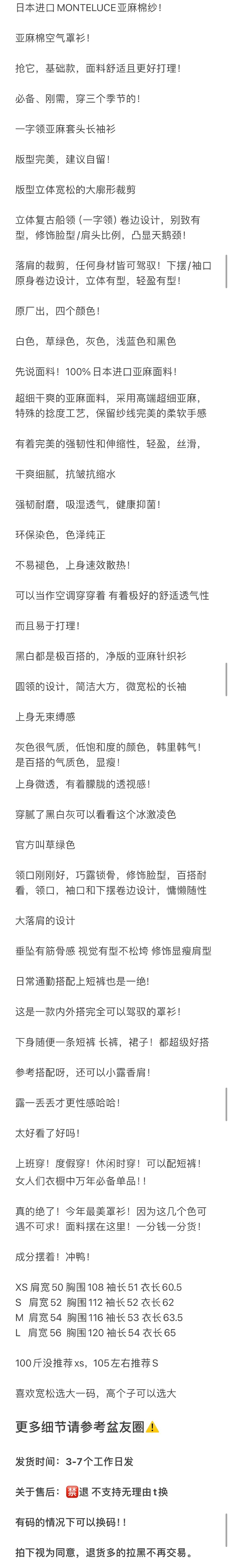 夏日刚需 日本进口MONTELUCE亚麻罩衫 一字领空气罩衫 干爽亚麻棉微透呼吸感 卷边长袖T恤
