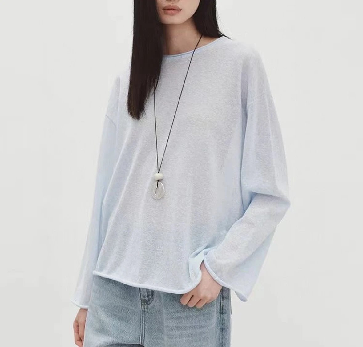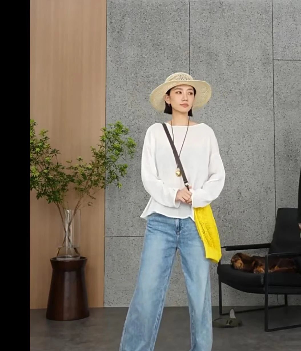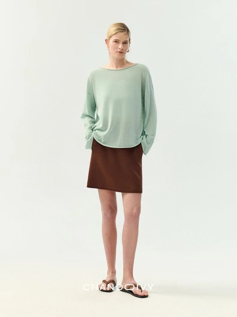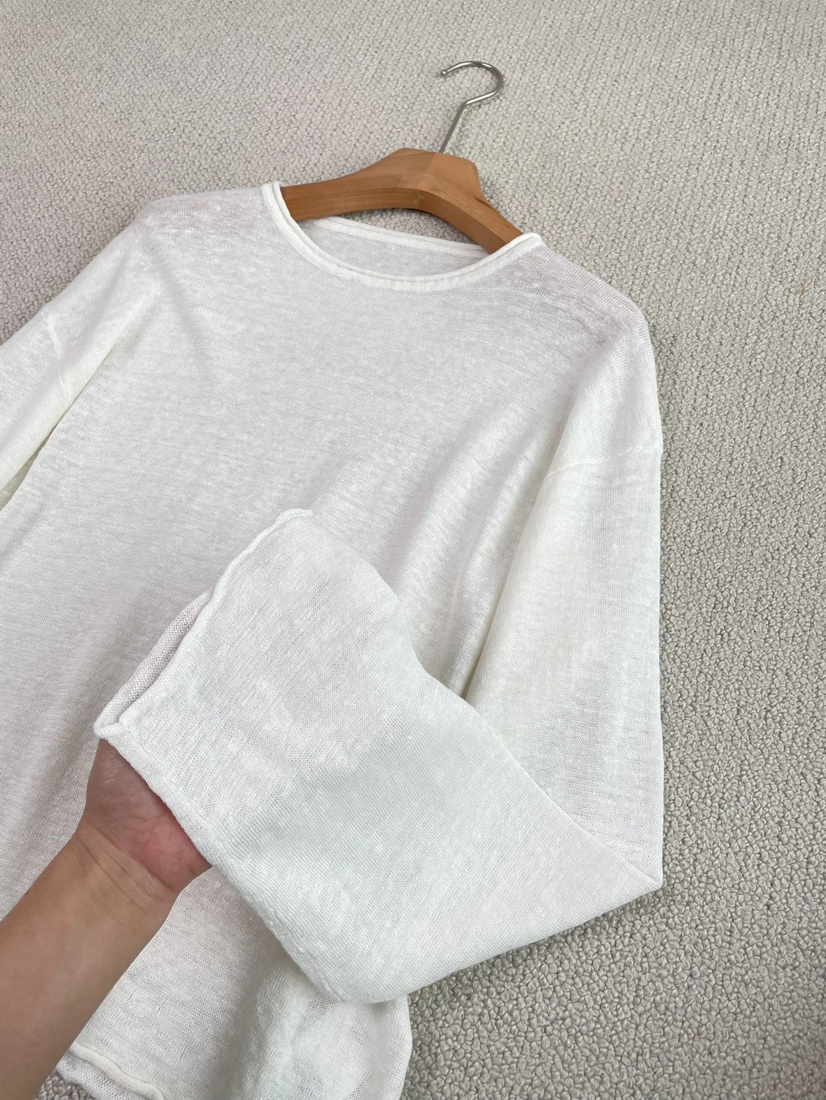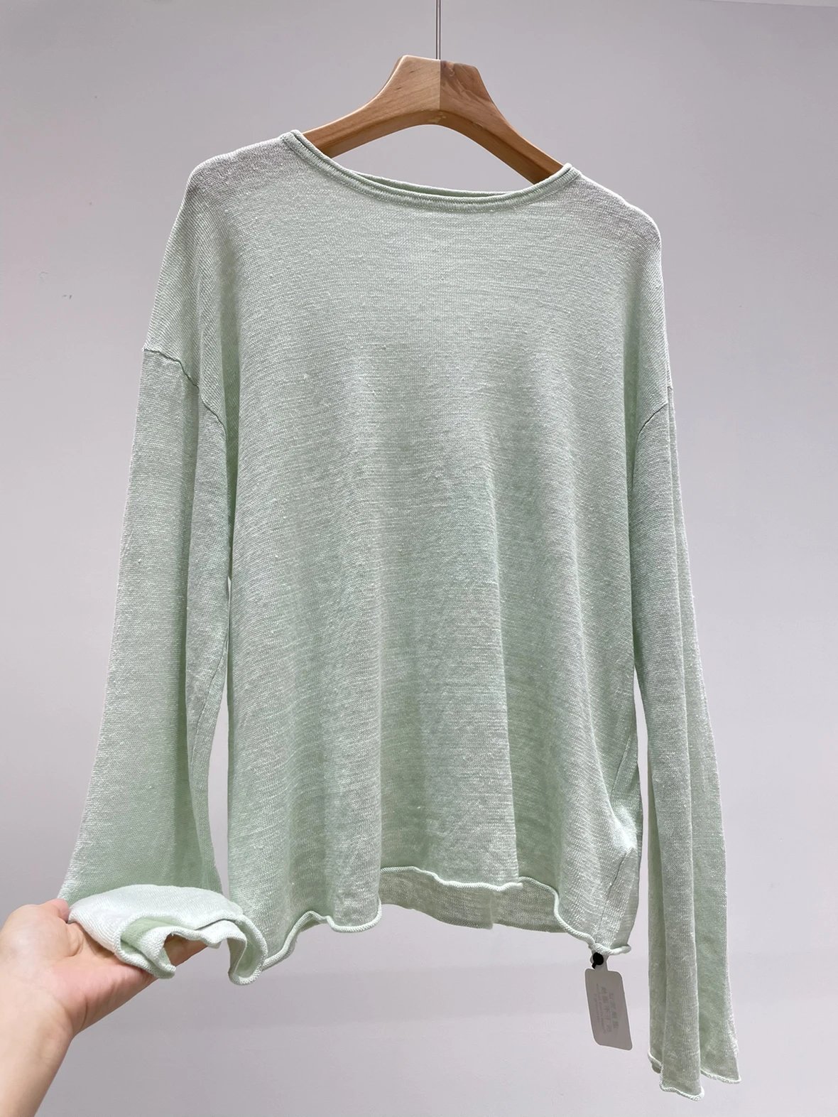 夏日刚需 日本进口MONTELUCE亚麻罩衫 一字领空气罩衫 干爽亚麻棉微透呼吸感 卷边长袖T恤
