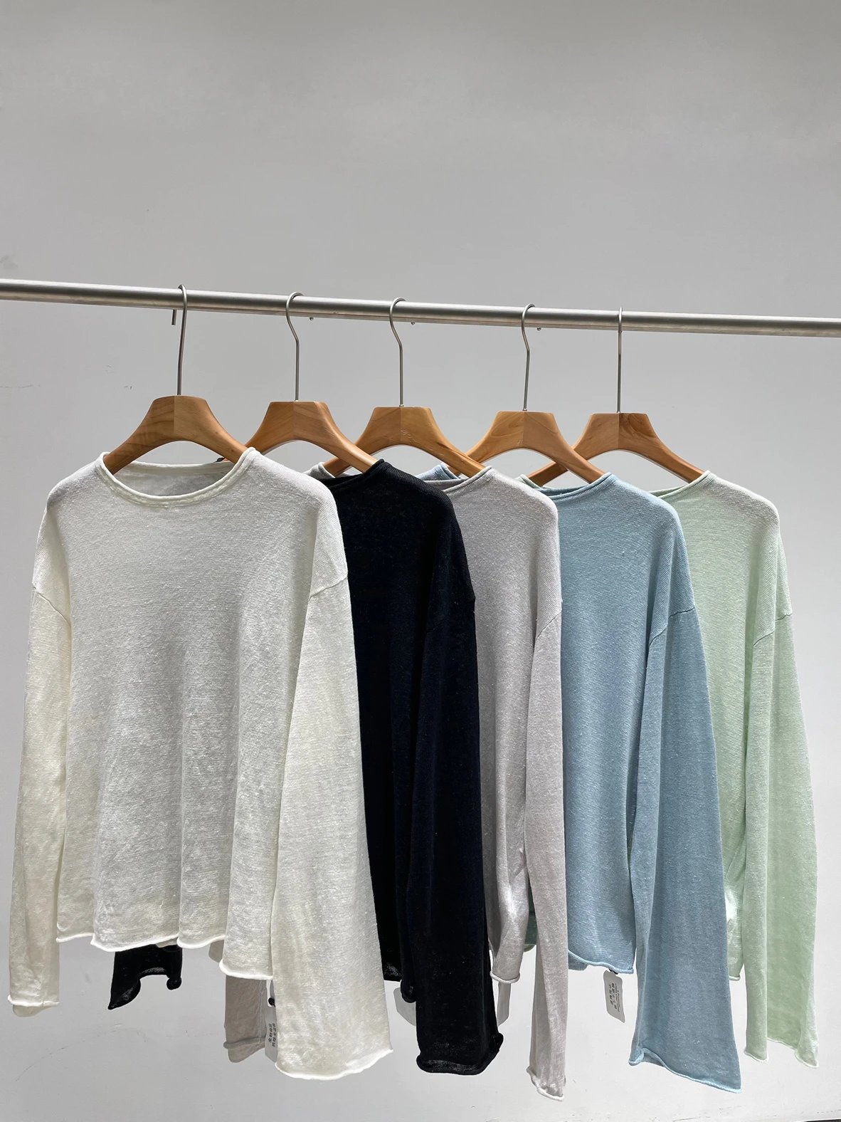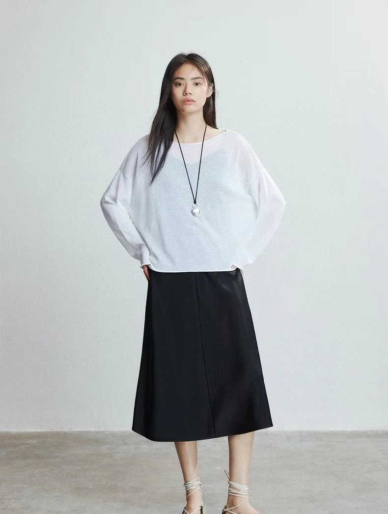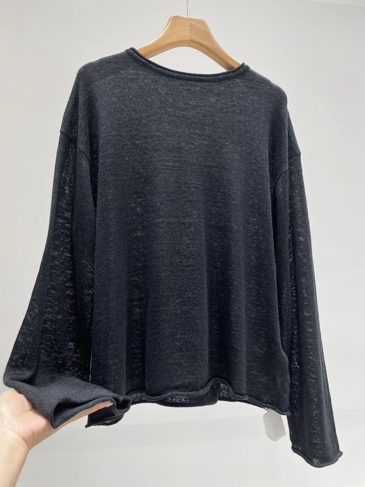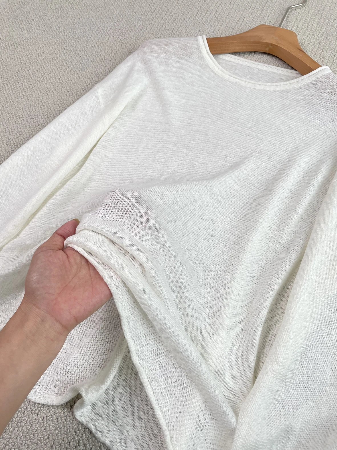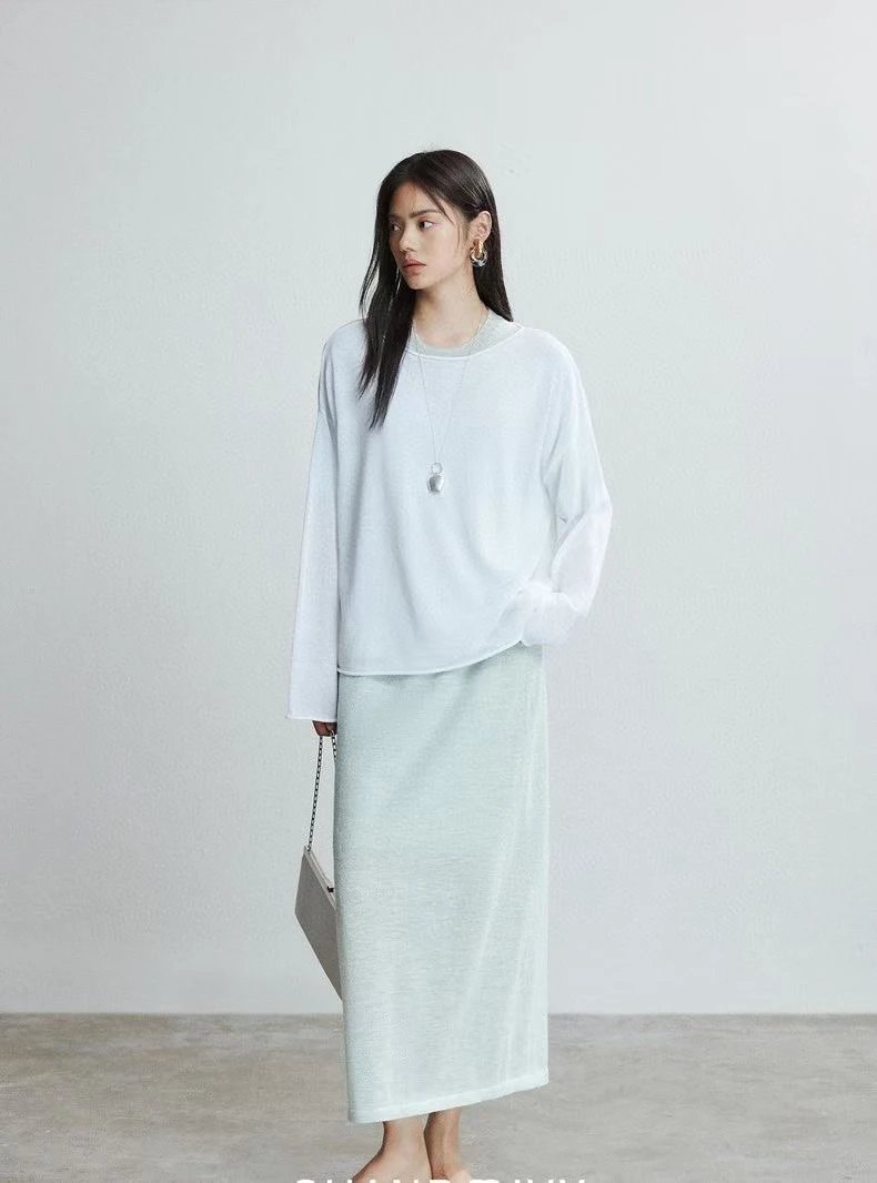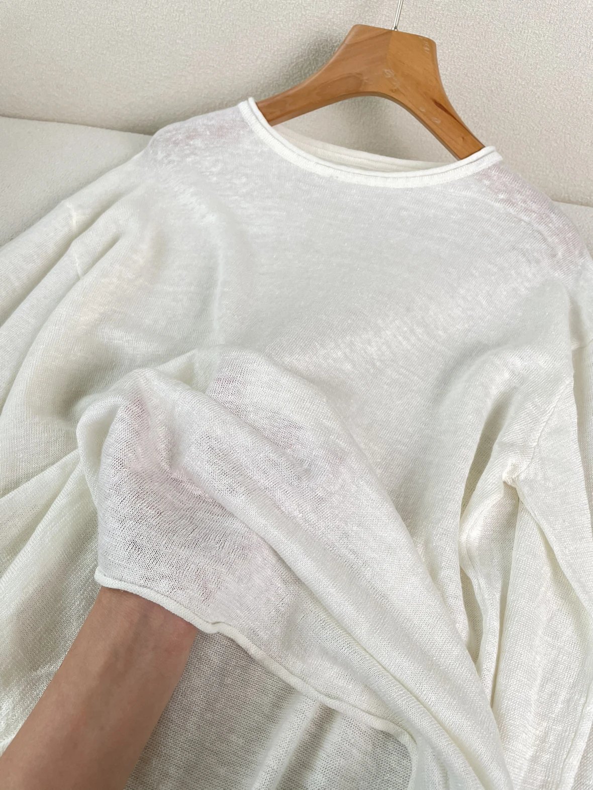 夏日刚需 日本进口MONTELUCE亚麻罩衫 一字领空气罩衫 干爽亚麻棉微透呼吸感 卷边长袖T恤