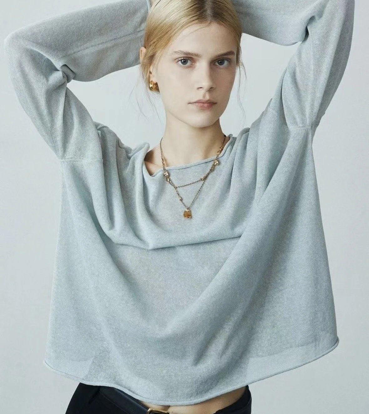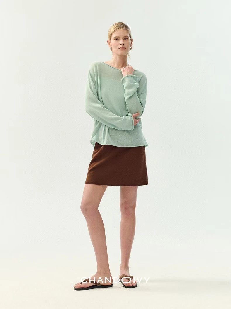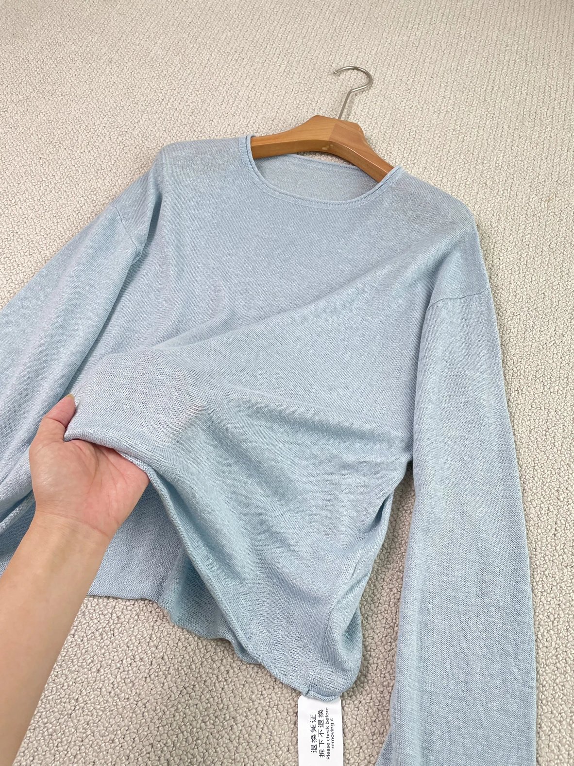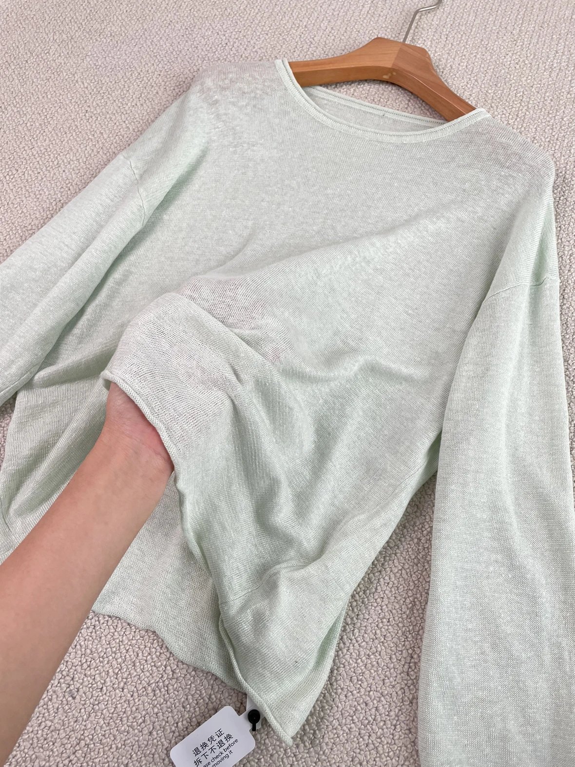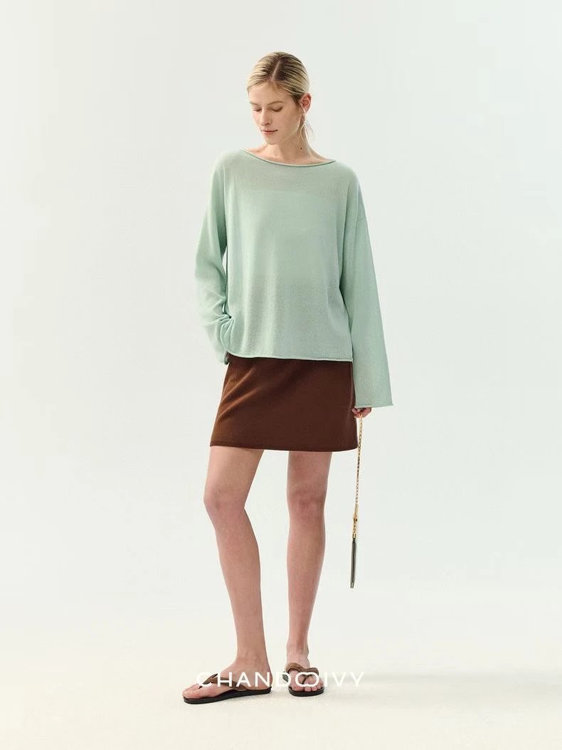 夏日刚需 日本进口MONTELUCE亚麻罩衫 一字领空气罩衫 干爽亚麻棉微透呼吸感 卷边长袖T恤