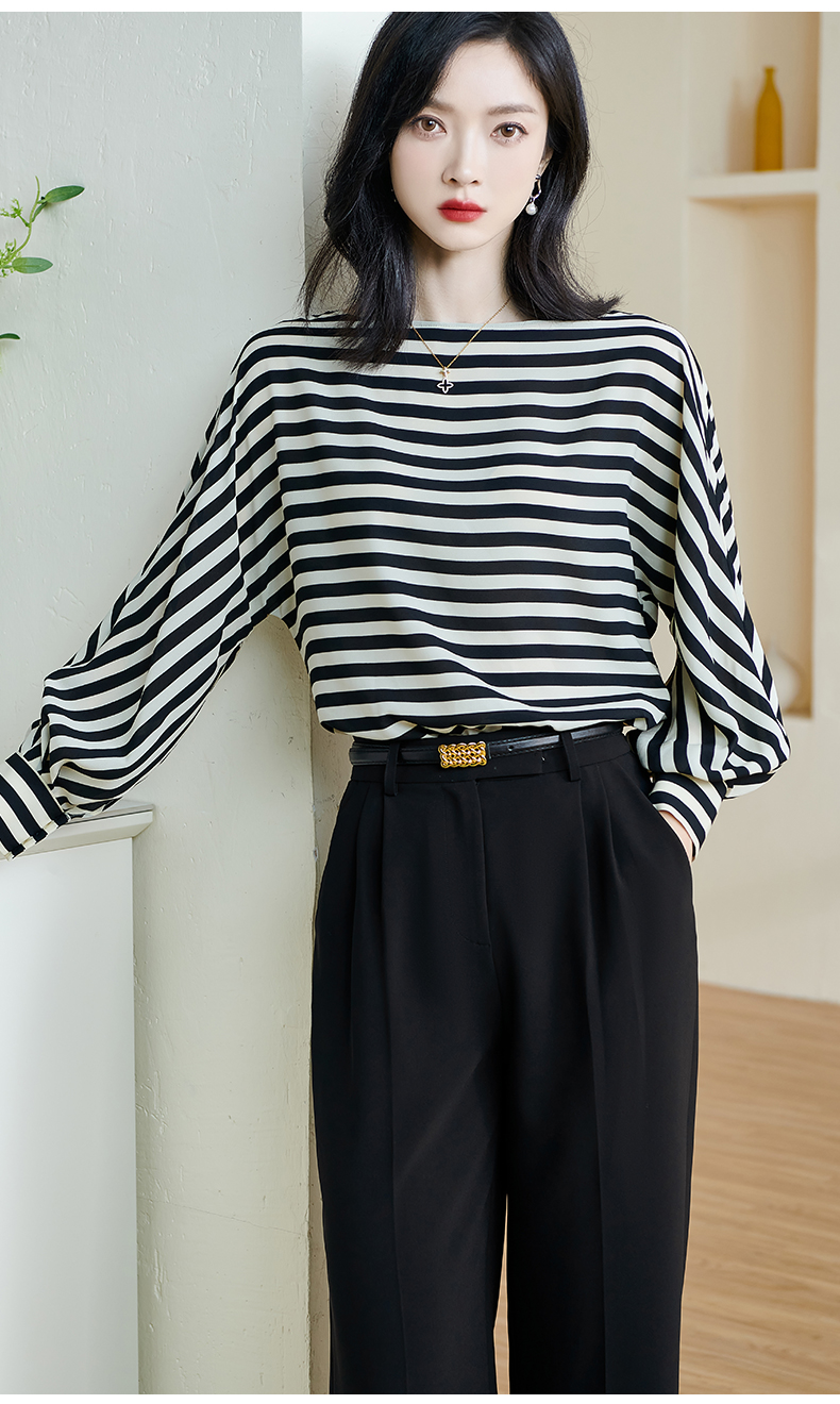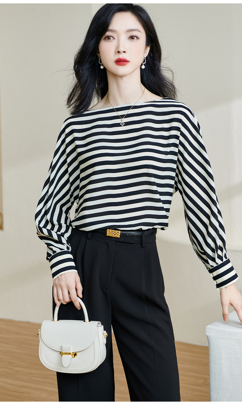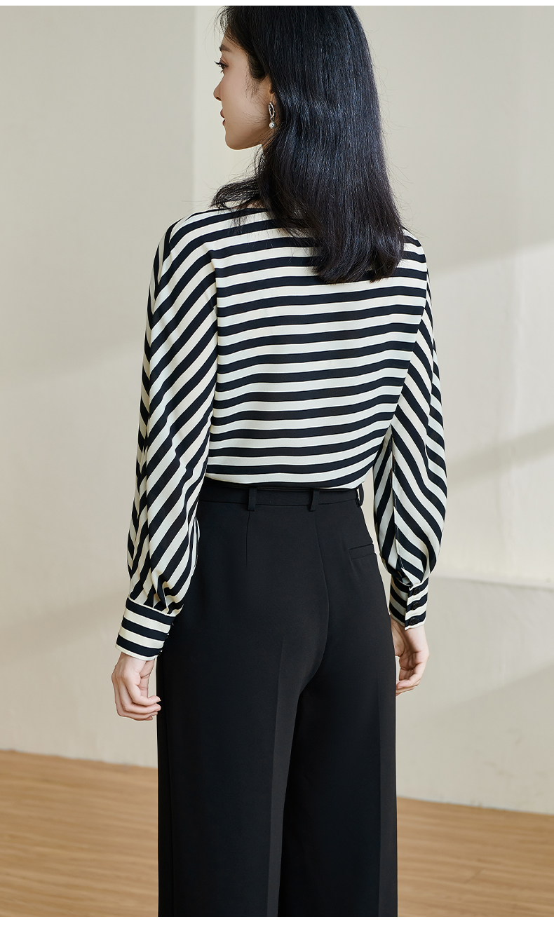 剩M/XL 钢琴黑白键衬衫 米思阳2026春款时尚洋气经典条纹衬衫女宽松显瘦长袖上衣2020