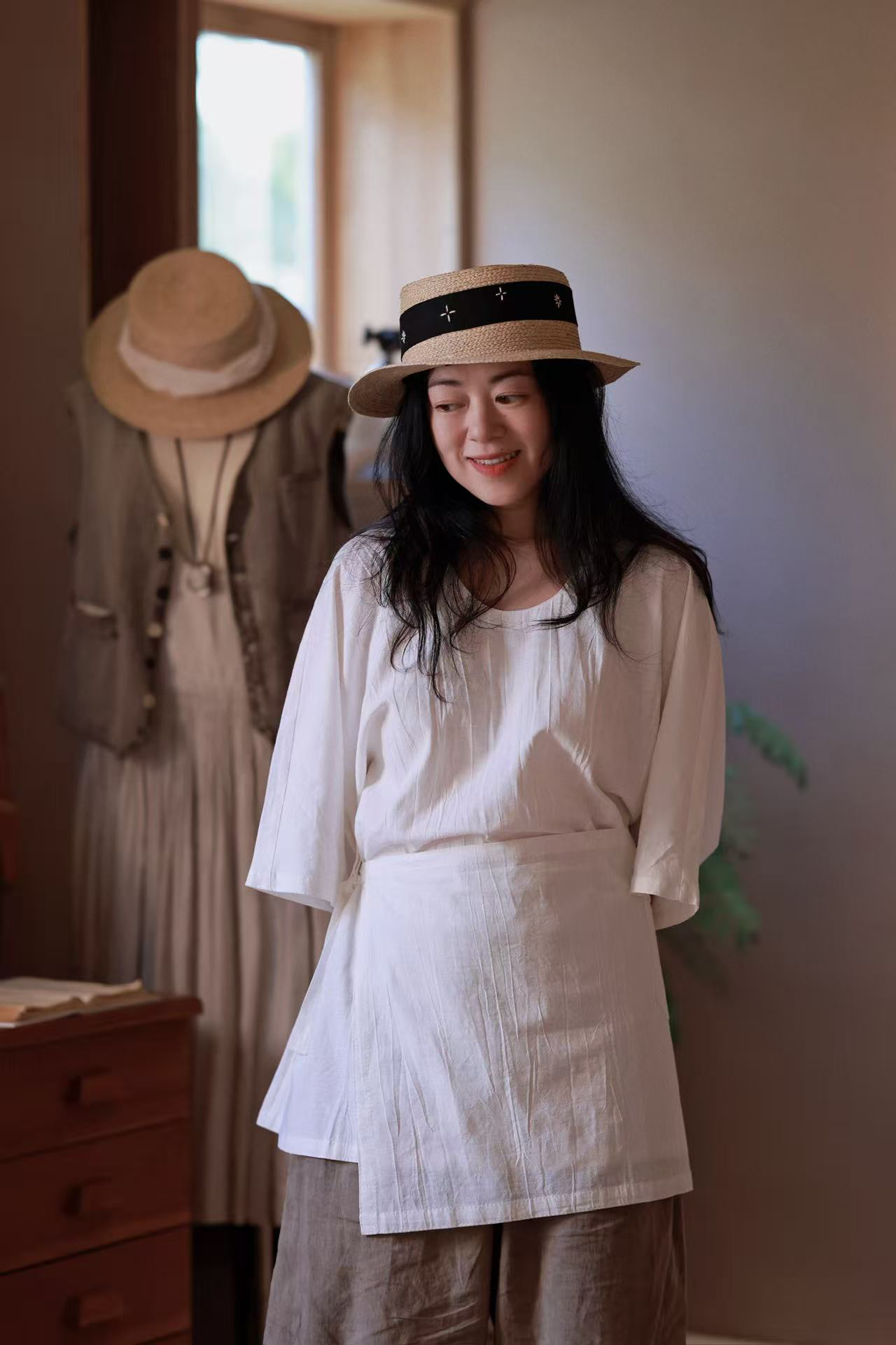 EnAvant 亚麻围裙式短袖衬衫