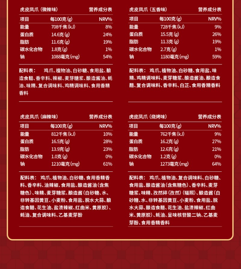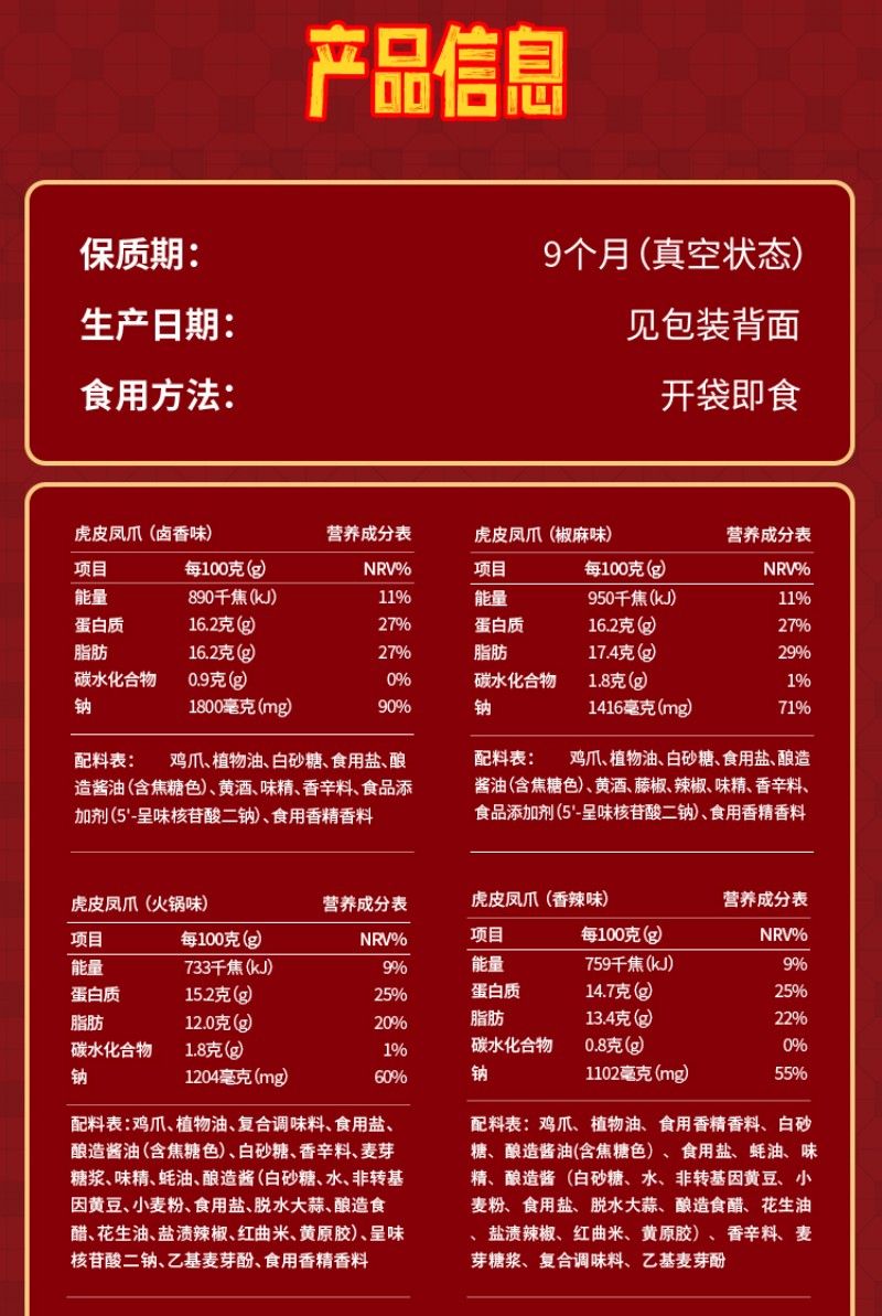 王小卤虎皮凤爪混合味 105g*5袋(卤香+火锅+香辣+微辣+椒麻)鸡爪