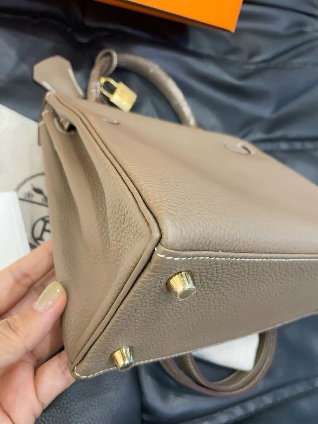 【商品详情】正品二手爱马仕 kelly 25 大象灰 金扣 togo皮 手拿包👜全新 25*18 Y刻 大全套配件:票 钥匙挂牌 锁 肩带 说明书 防尘袋 盒子。永恒的经典