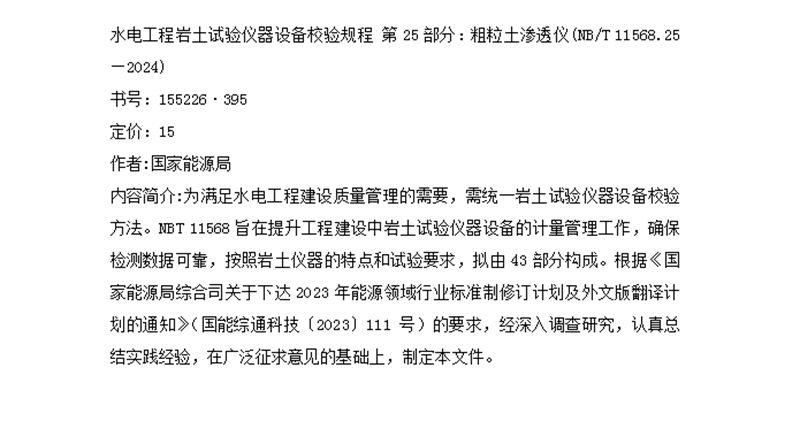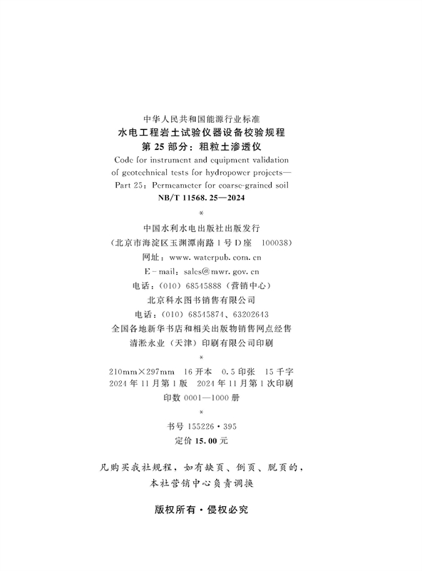 水电工程岩土试验仪器设备校验规程 第25部分:粗粒土渗透仪(NB/T 11568.25—2024)