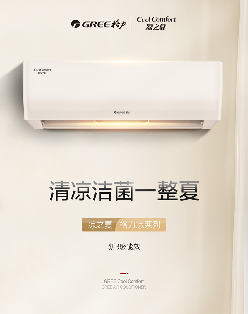 格力(GREE)凉之夏三级 变频快速冷暖分体式立享舒适家用壁挂式静音卧室推荐空调挂机 大1.5匹