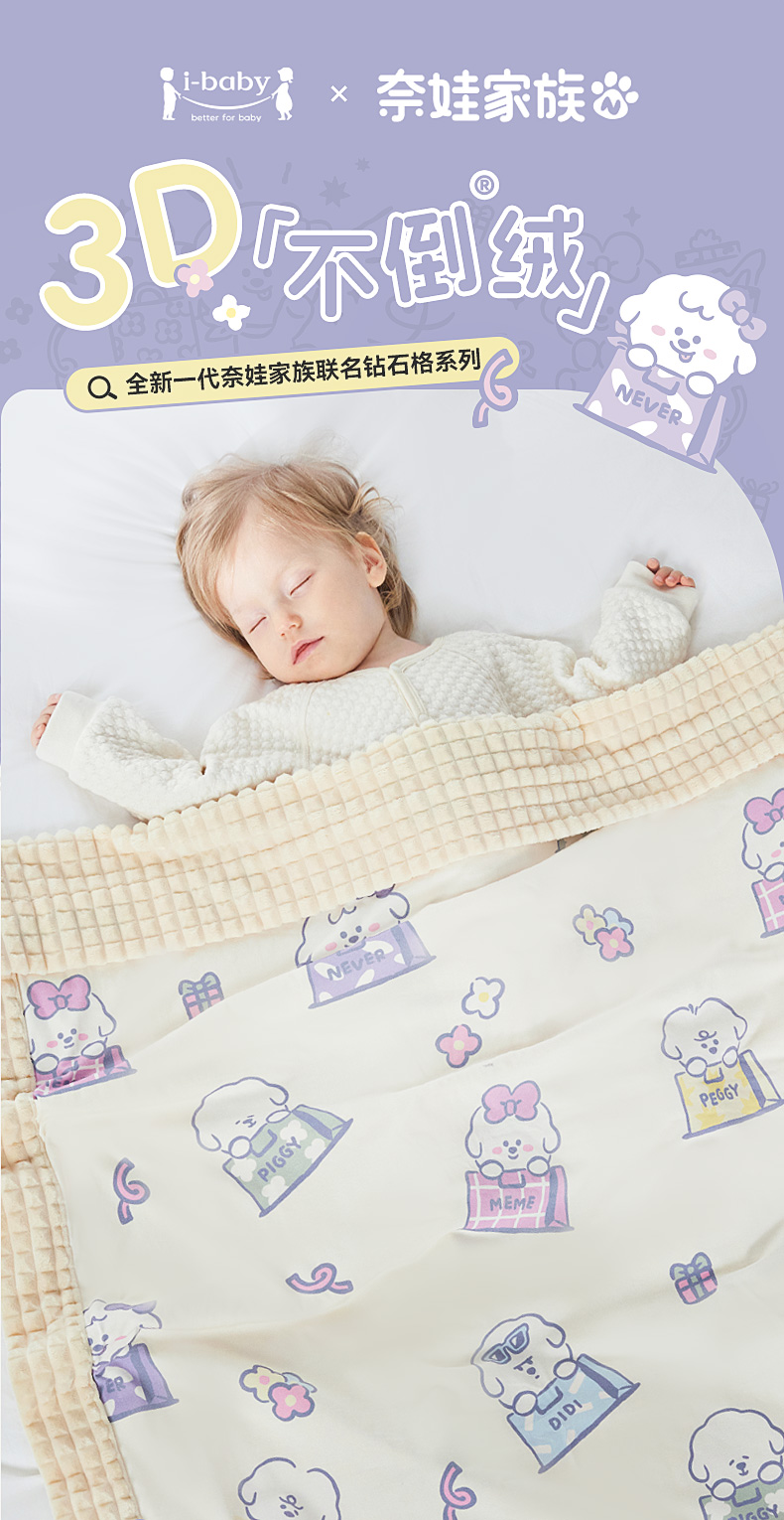 i-baby奈娃联名钻石格不倒绒儿童安抚睡毯