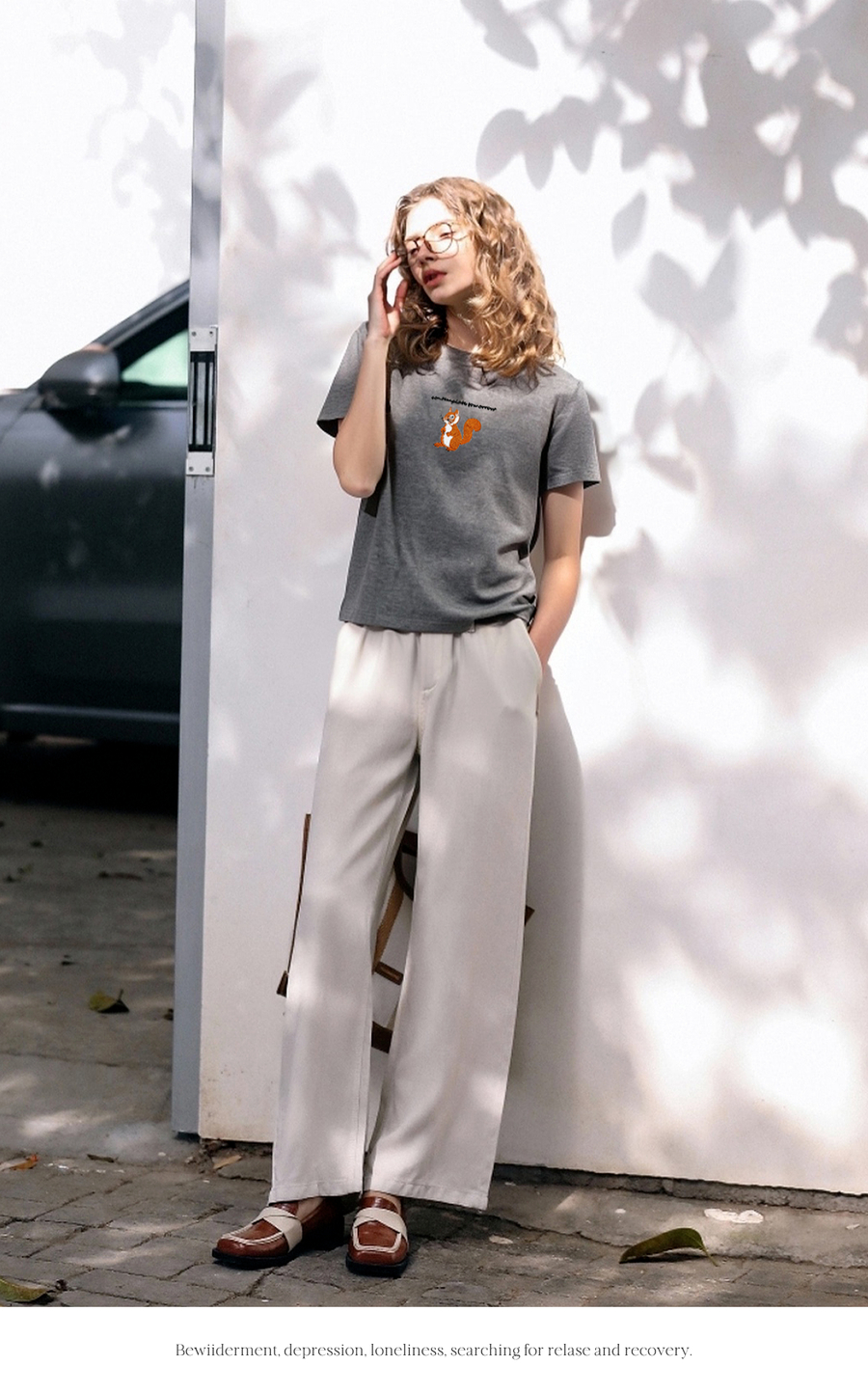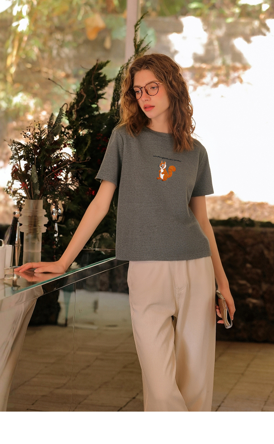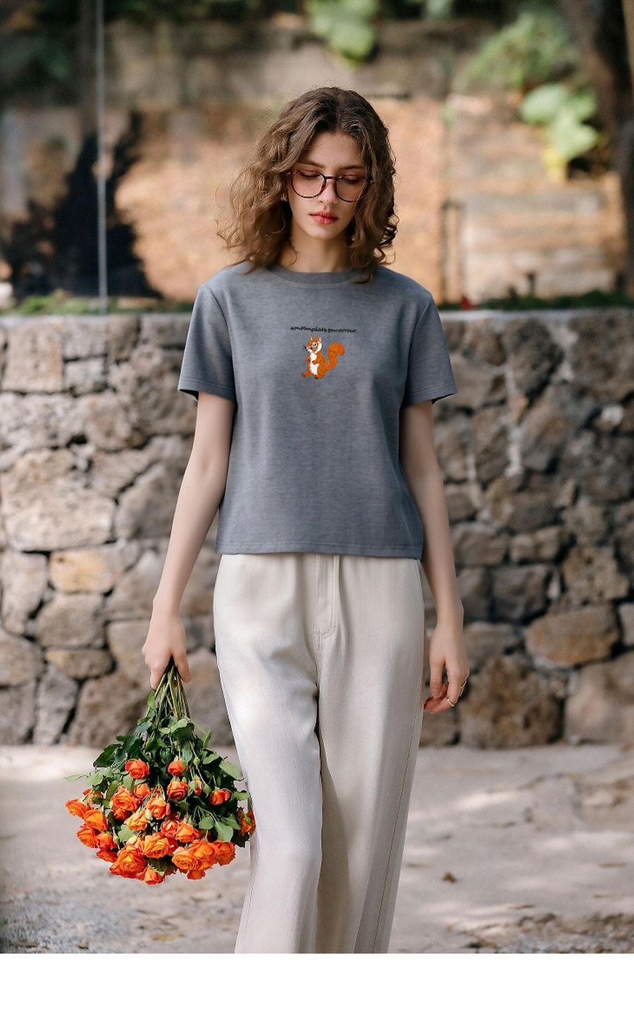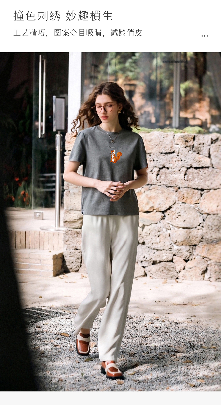 OLrain欧芮儿灰色撞色字母绣花休闲T恤夏季2025新款短袖百搭上衣