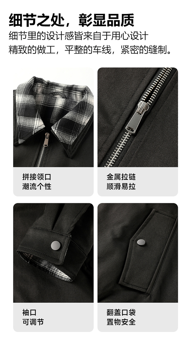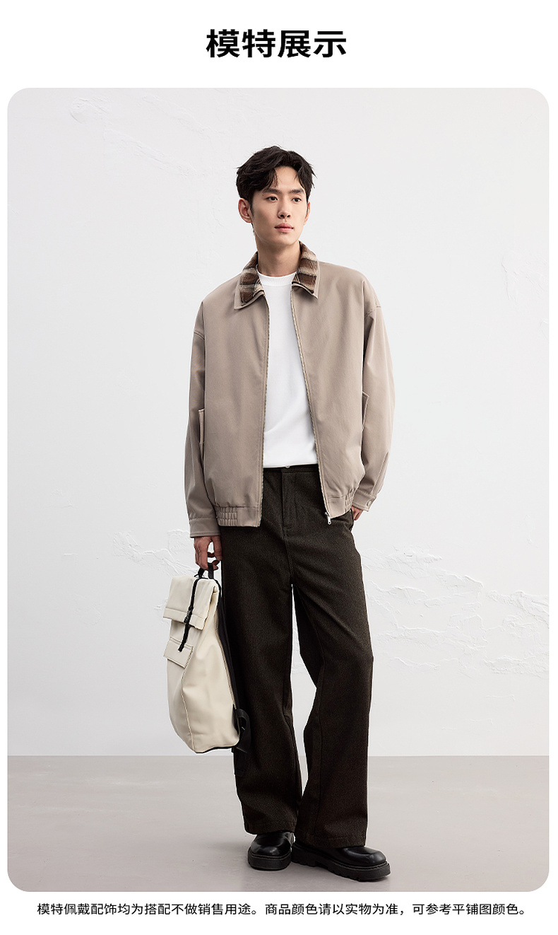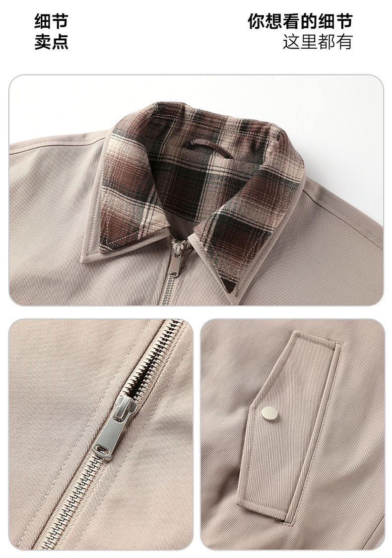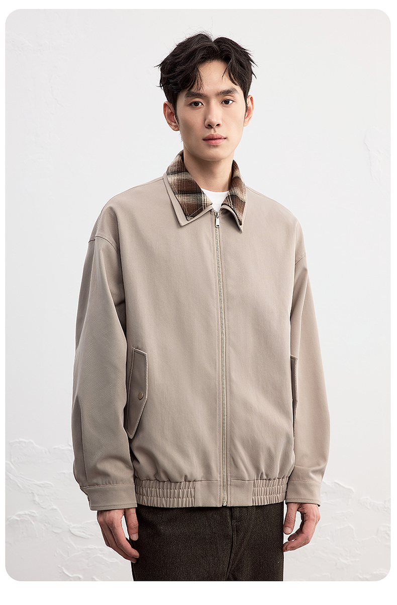 GXG男装25秋季时尚撞色格纹领口潮流宽松百搭休闲男式翻领夹克K&C