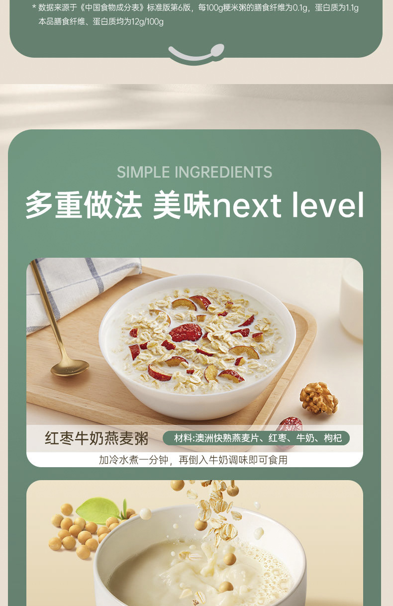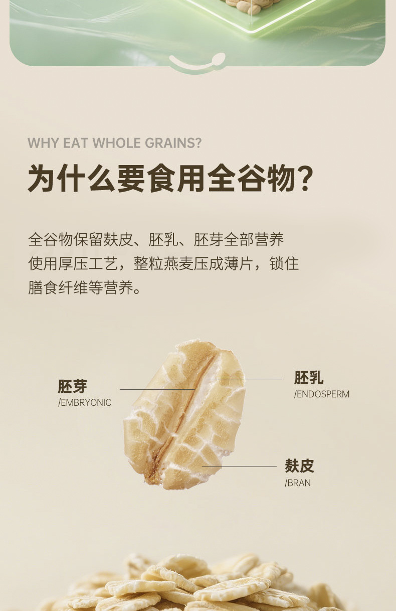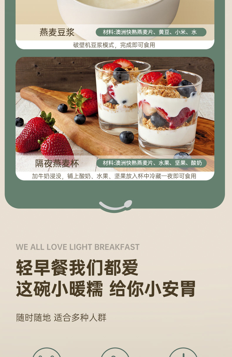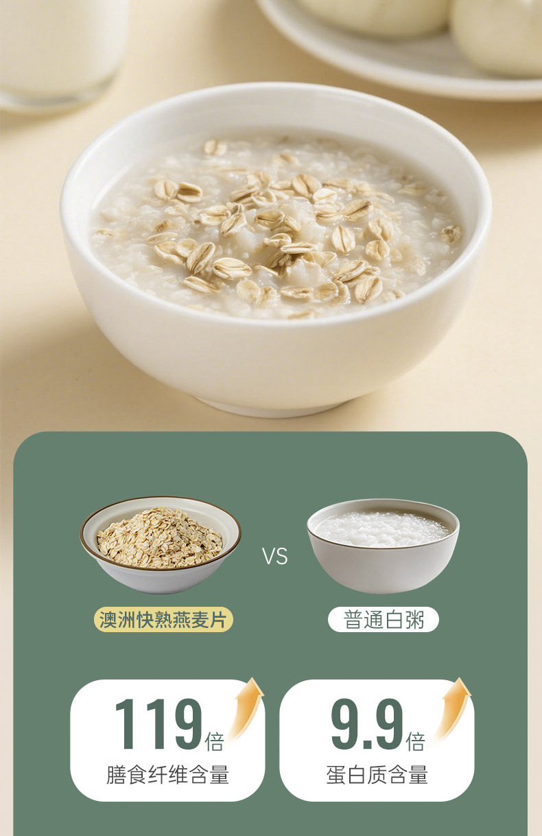 「2斤大桶装!片片美味」粮芯稻田燕麦片澳洲快熟纯燕麦片1kg/桶装早餐即食冲饮 粮油米面