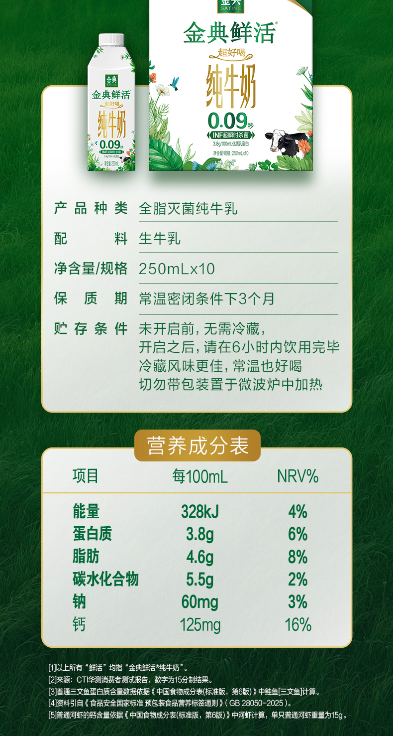 金典鲜活纯牛奶(250ml*10)