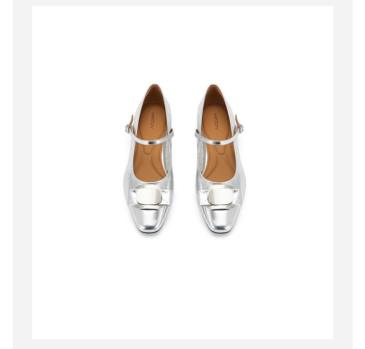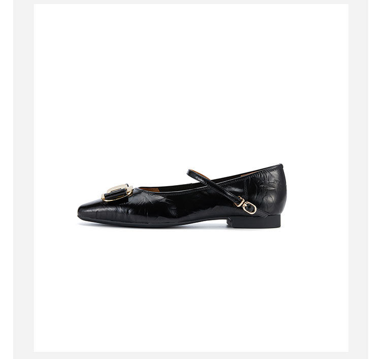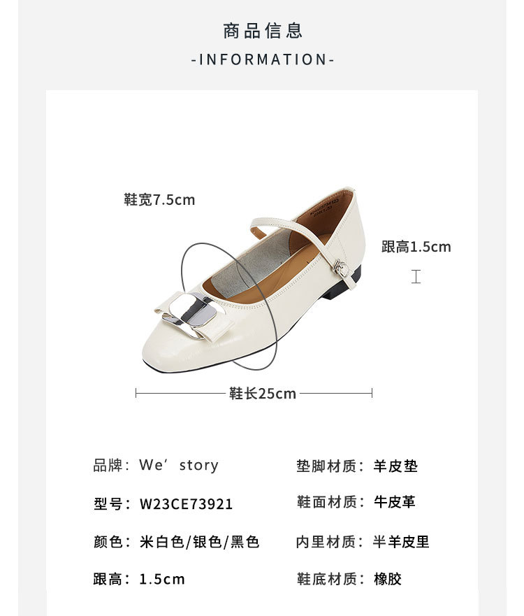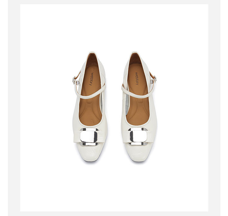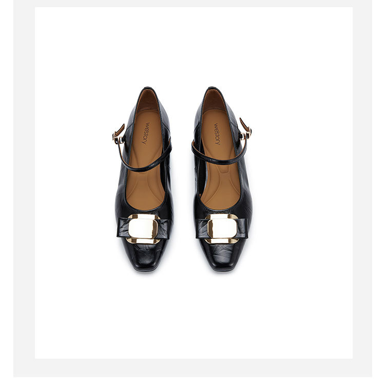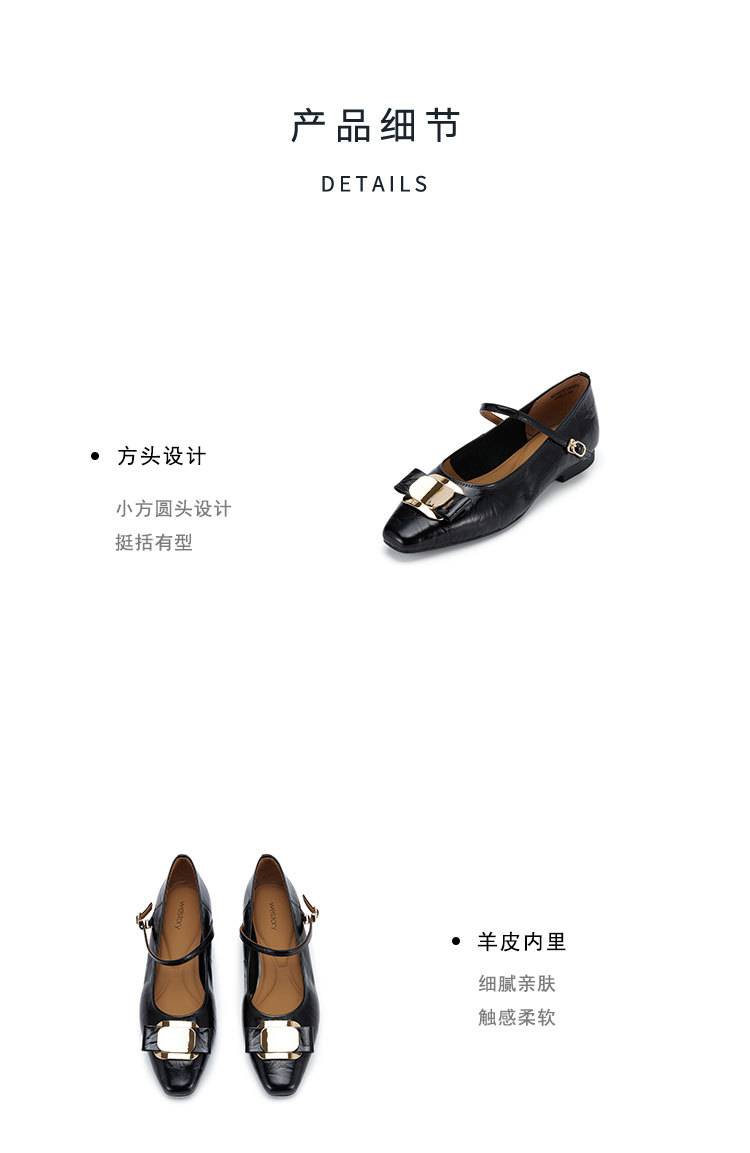 westory2024春季新款休闲小低跟小圆头系带玛丽珍皮鞋W24AE57341