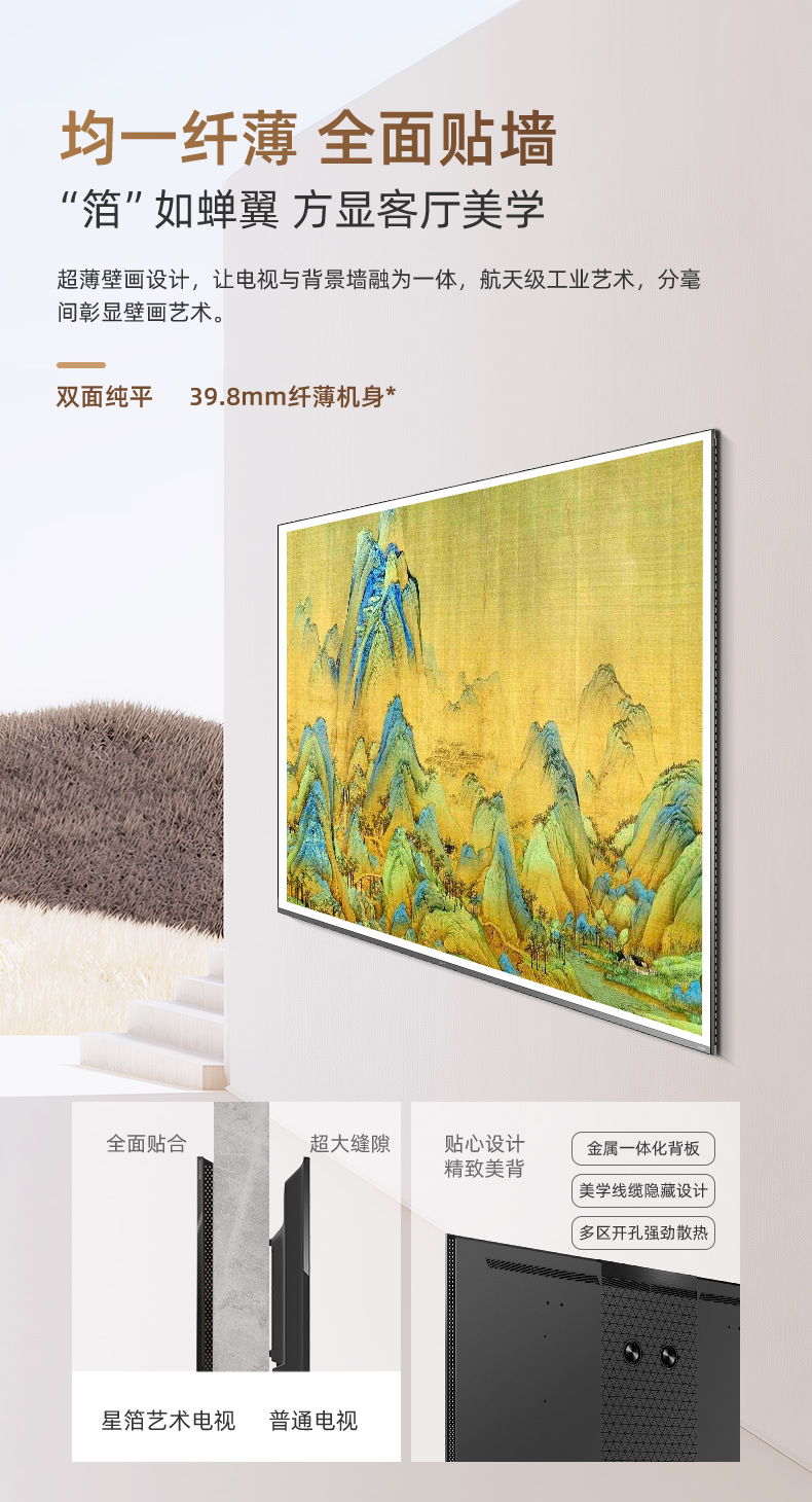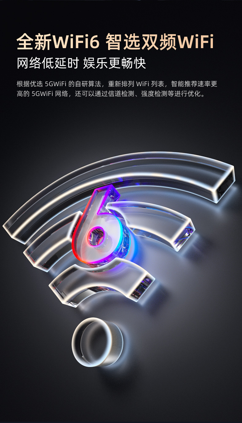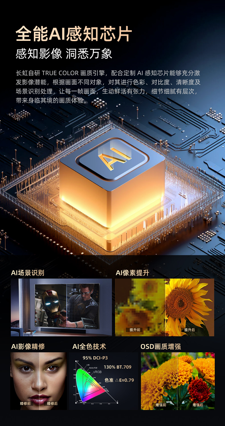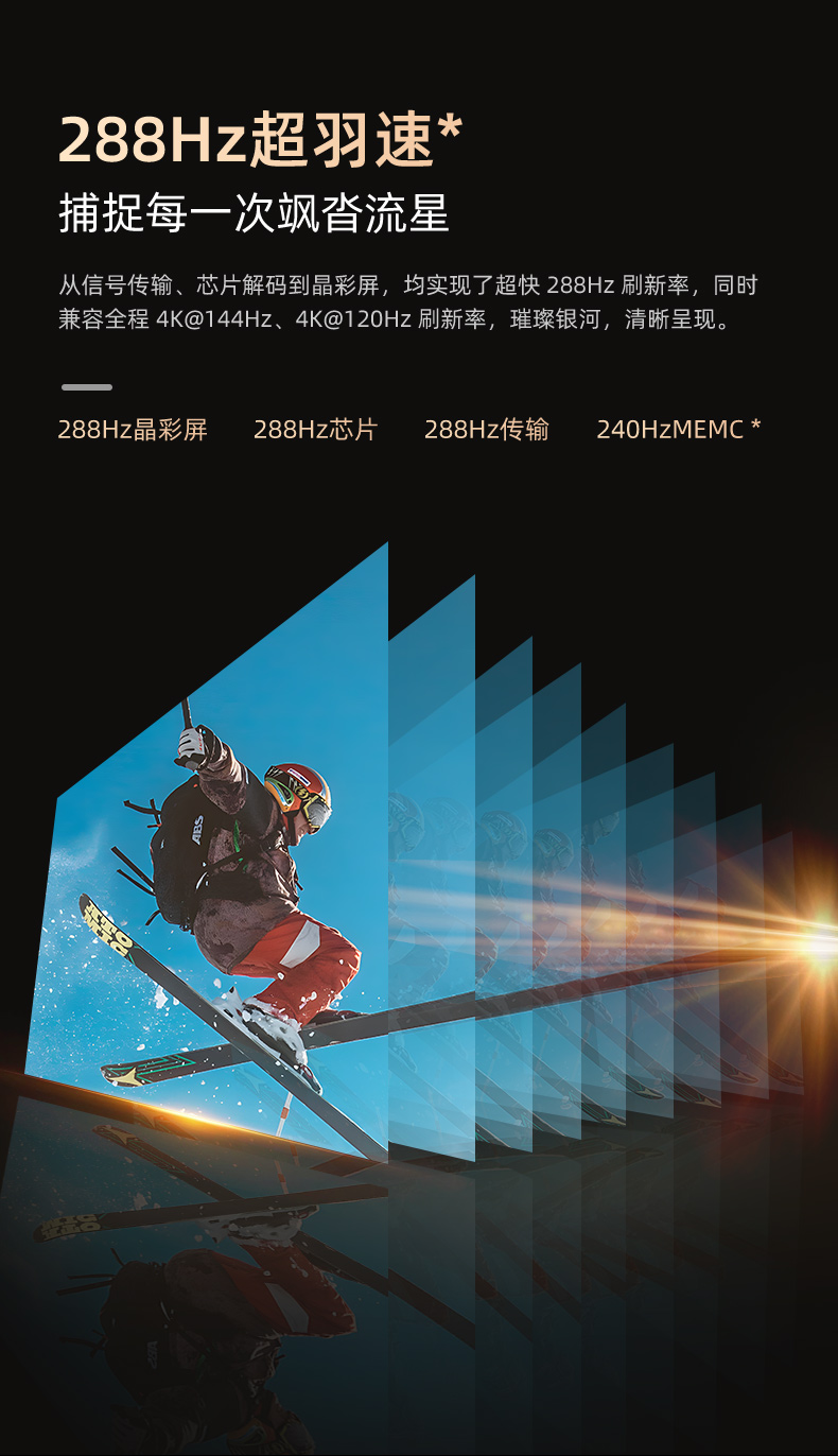 贴墙厚度39mm、屏幕刷新率288Hz、智能长虹超脑2.0、Wifi6