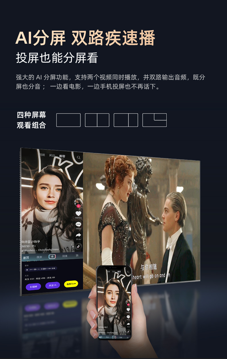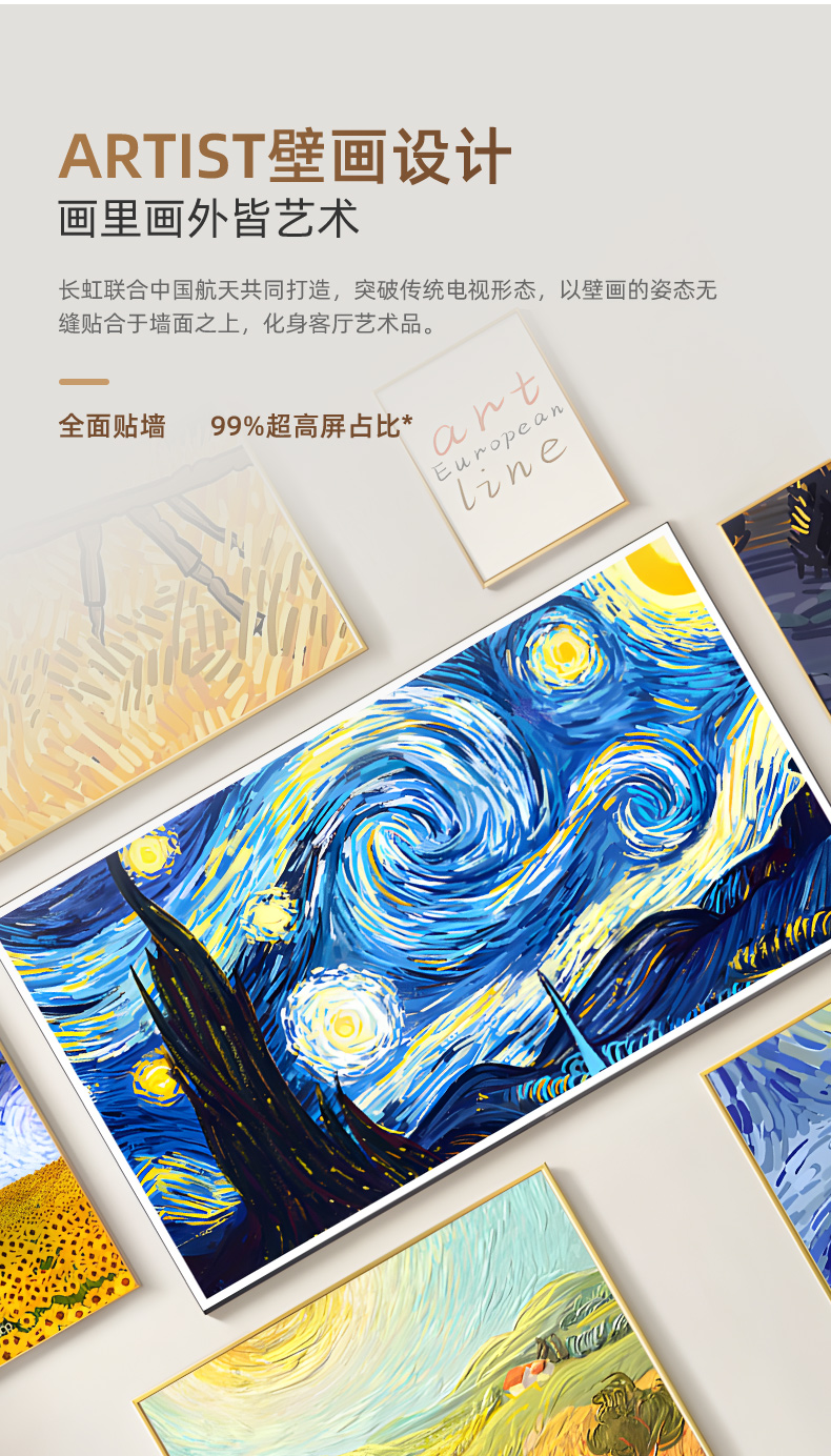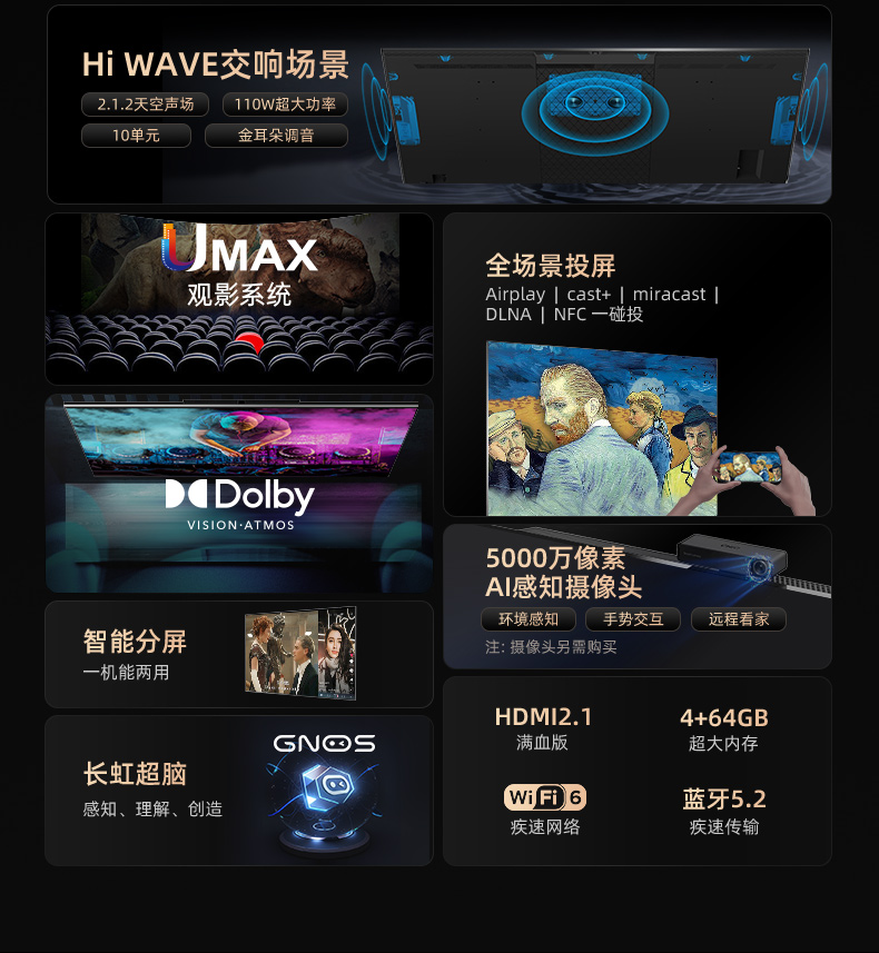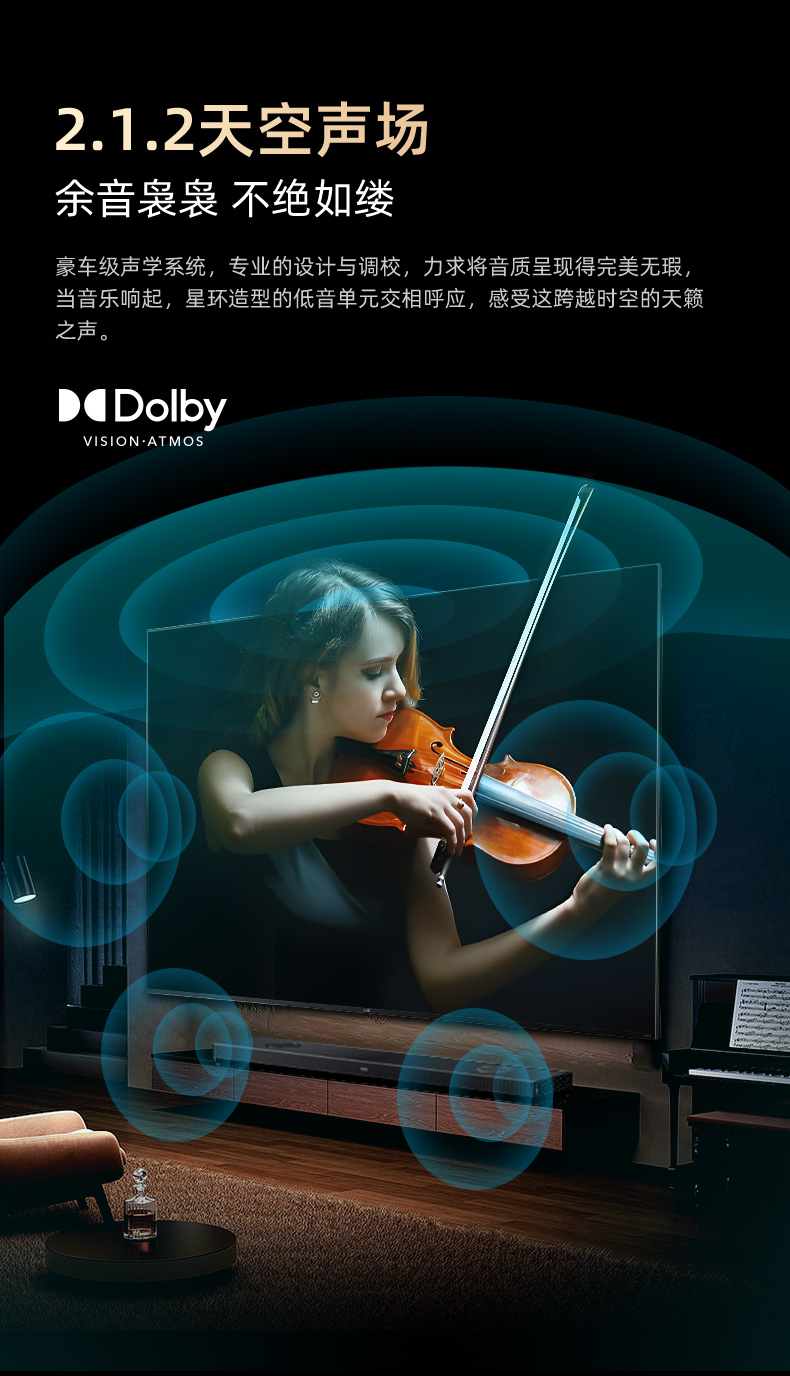 贴墙厚度39mm、屏幕刷新率288Hz、智能长虹超脑2.0、Wifi6