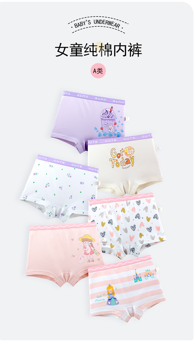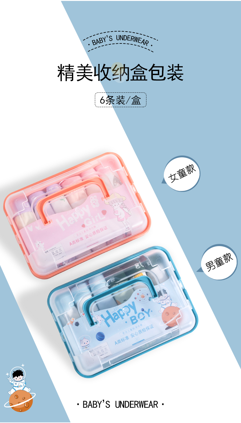 童童树新款A类儿童内裤6条装纯棉卡通印花盒装男童女童平角裤(下单送收纳包)