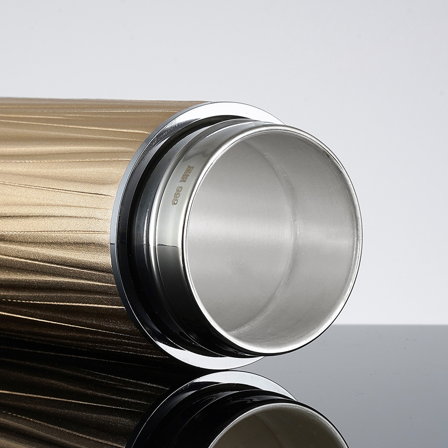 【寓意】:内胆足银材质杯,表面竖纹设计,纹理细腻清晰。防滑设计贴心实用,简约而有质感。