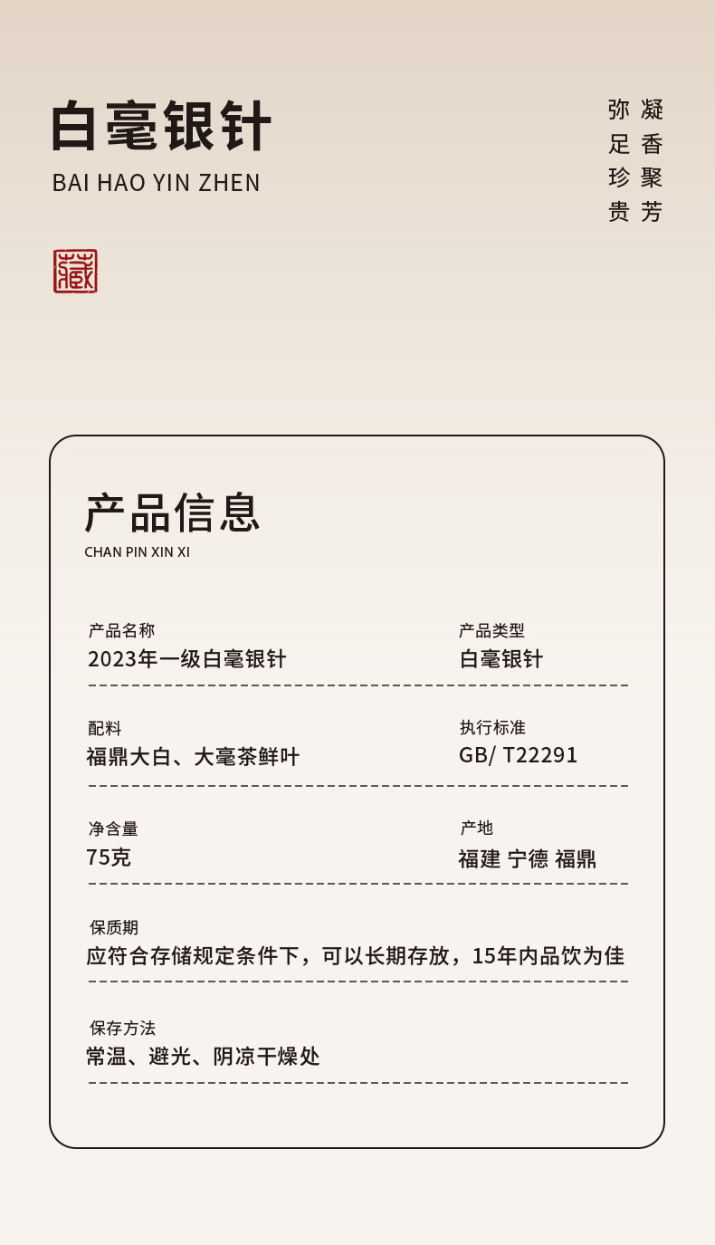福小白 福地福鼎白茶2023一级白毫银针75g