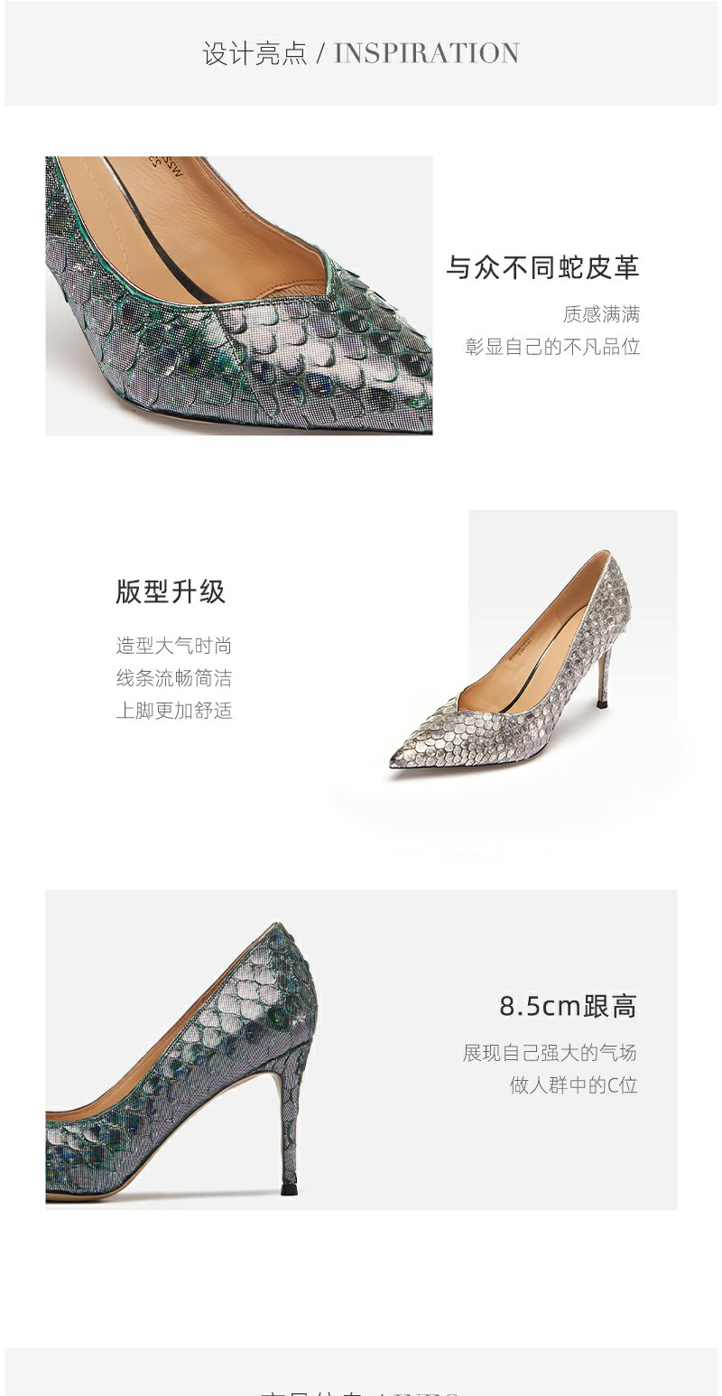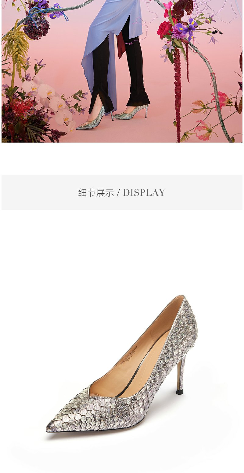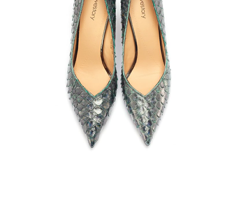 westory22年春季新款蛇皮高跟鞋真皮尖头欧美性感单鞋宴会W22AE54491