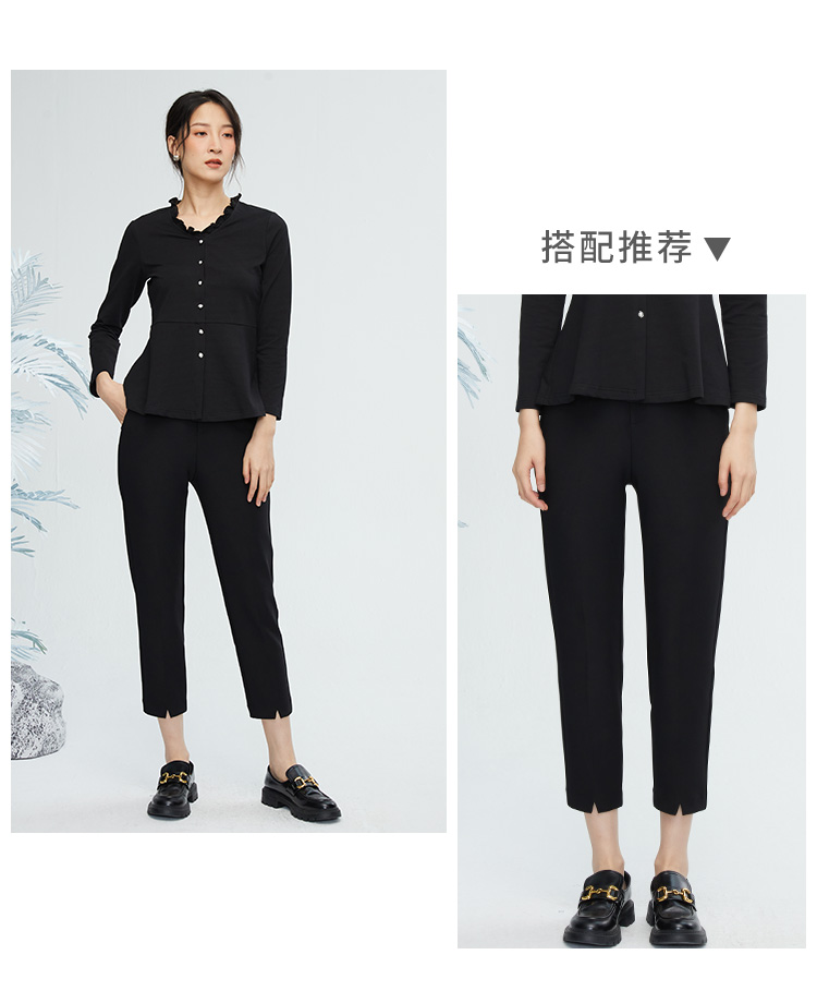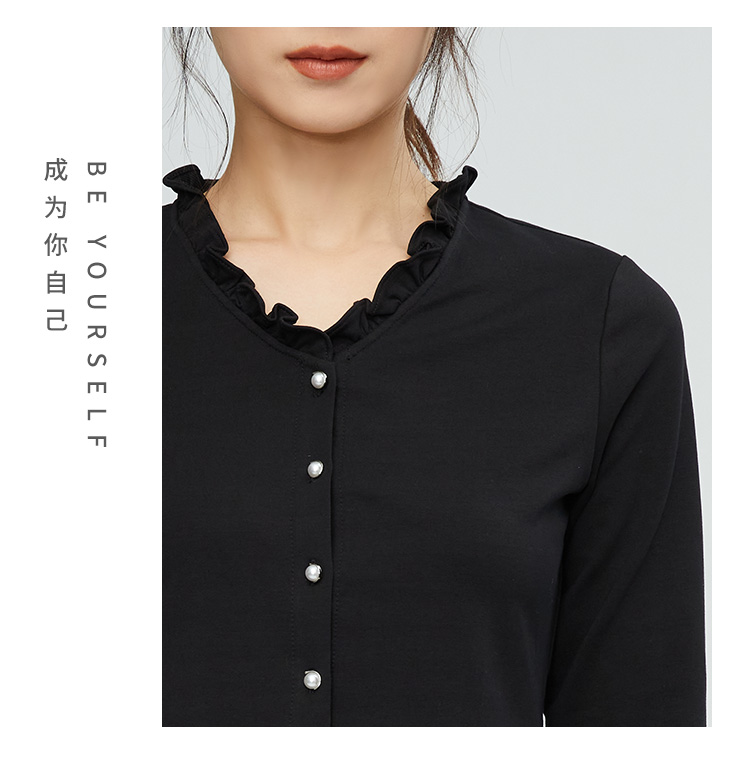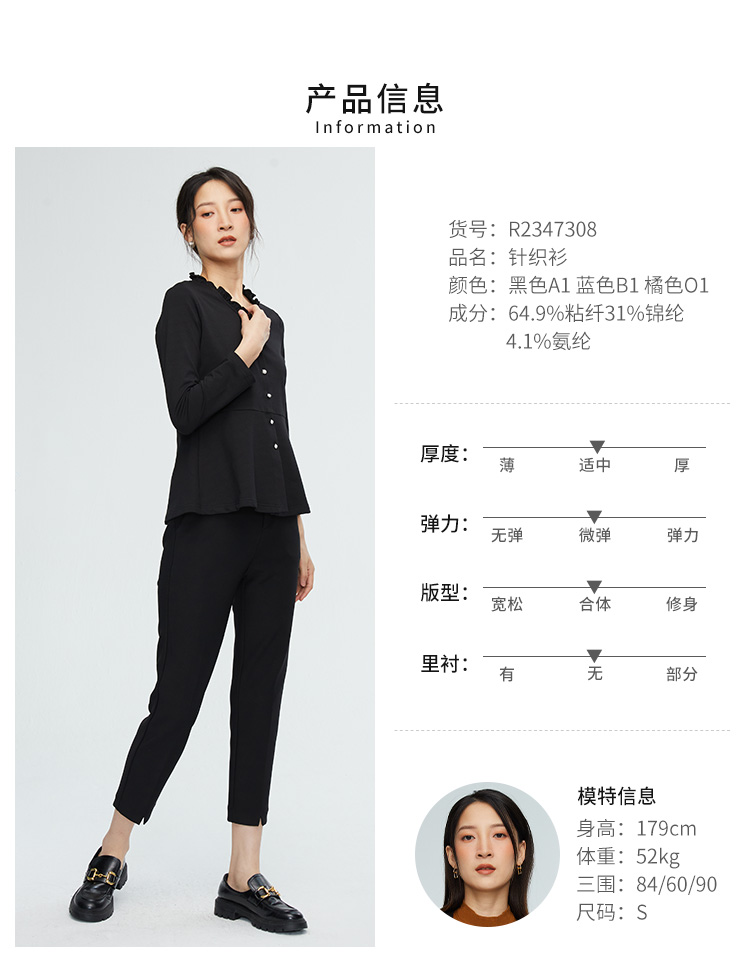VIVIAN LIU薇薇安刘R2347308秋女装新款木耳边领收腰长袖针织衫