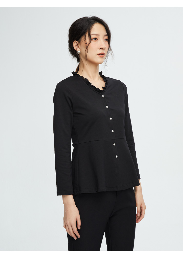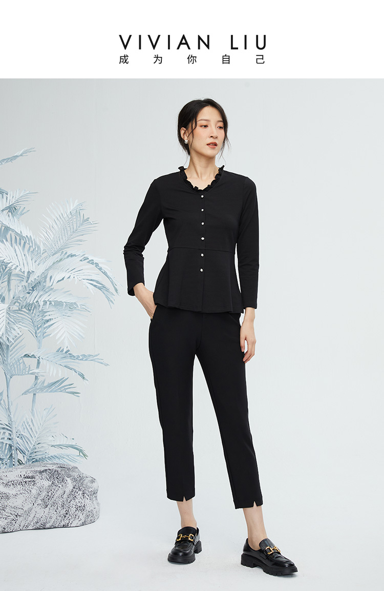 VIVIAN LIU R2443007初秋女装新款时尚圆领不规则下摆长袖上衣