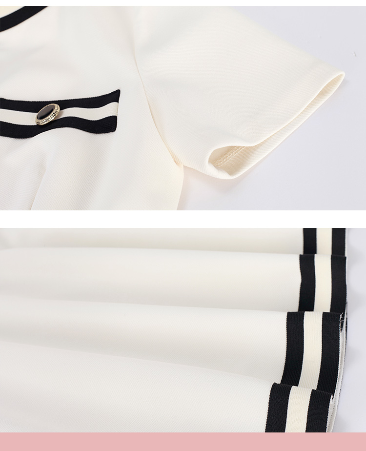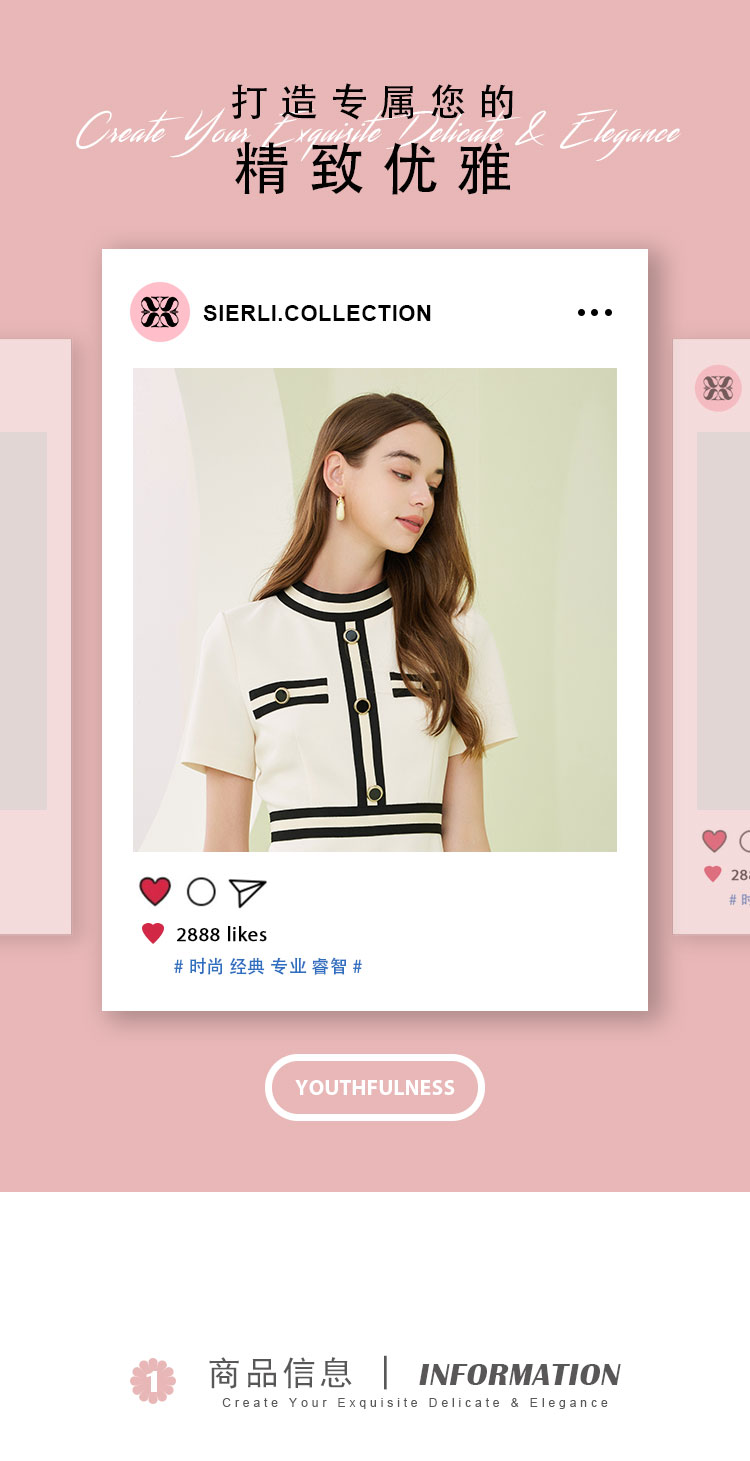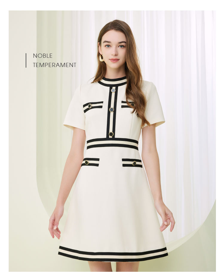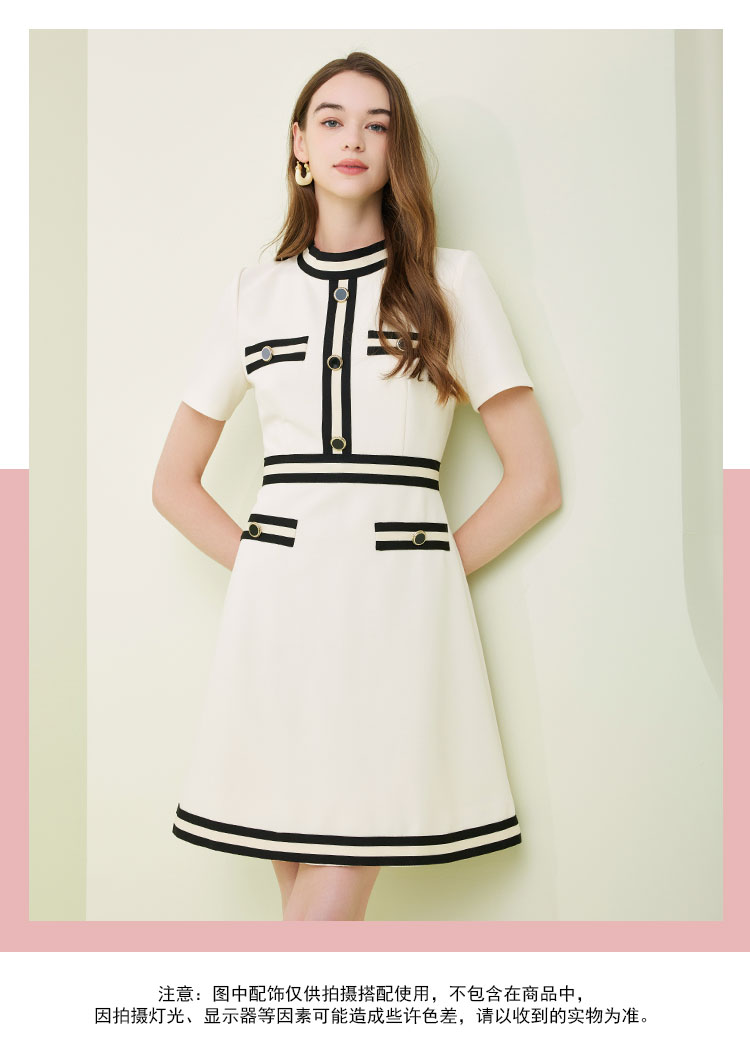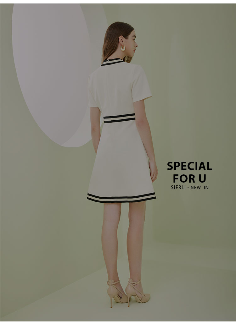 NF846斯尔丽瑟俪2023春夏新款名媛气质小香风撞色收腰显瘦A摆连衣裙