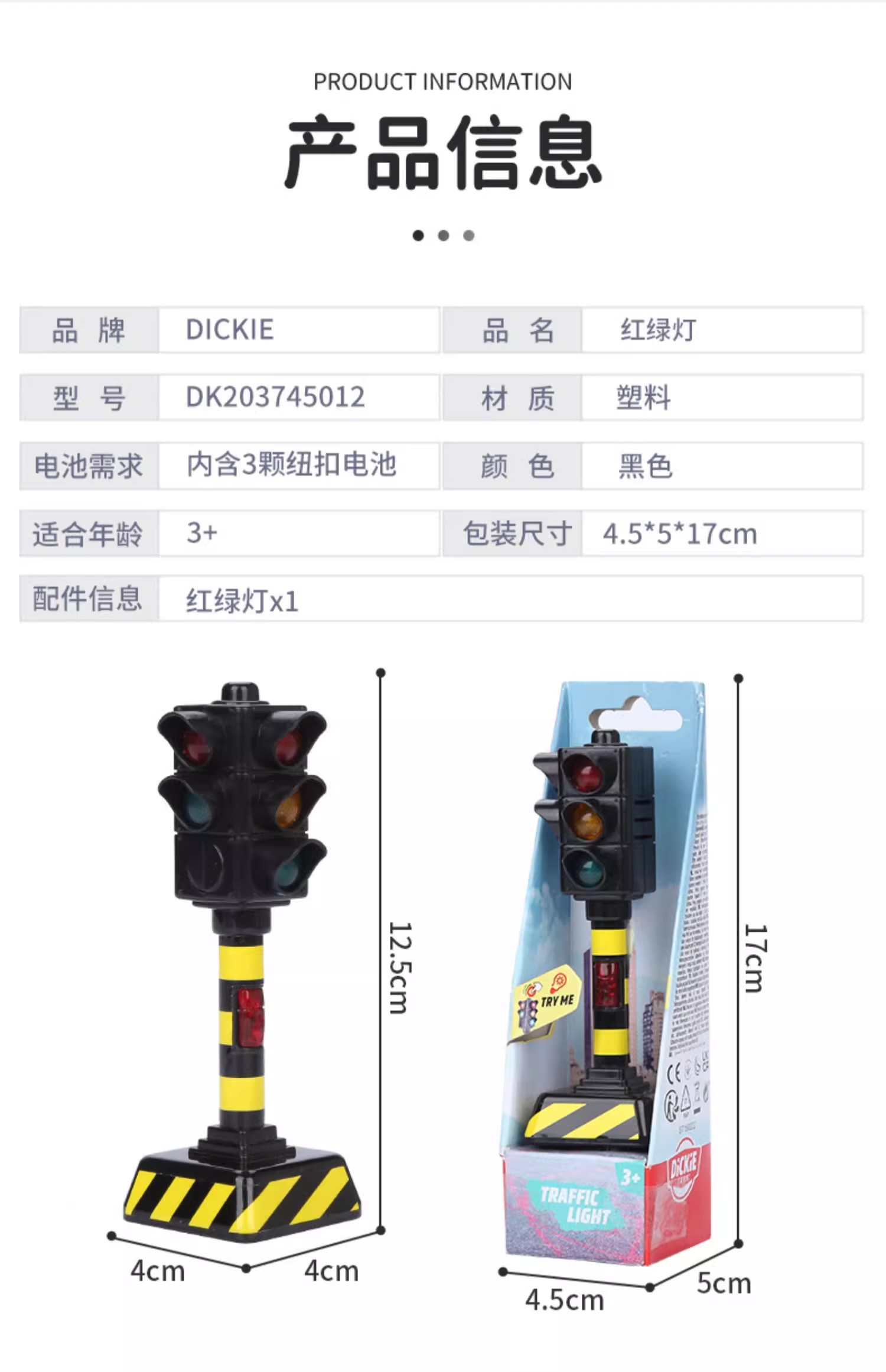 Dickie 红绿灯玩具仿真道路交通信号灯模型发声亮灯益智男孩 3岁+