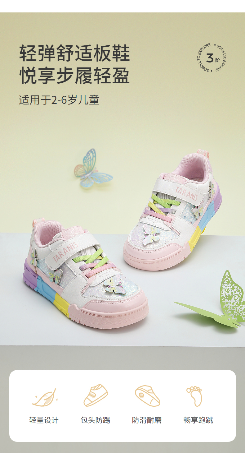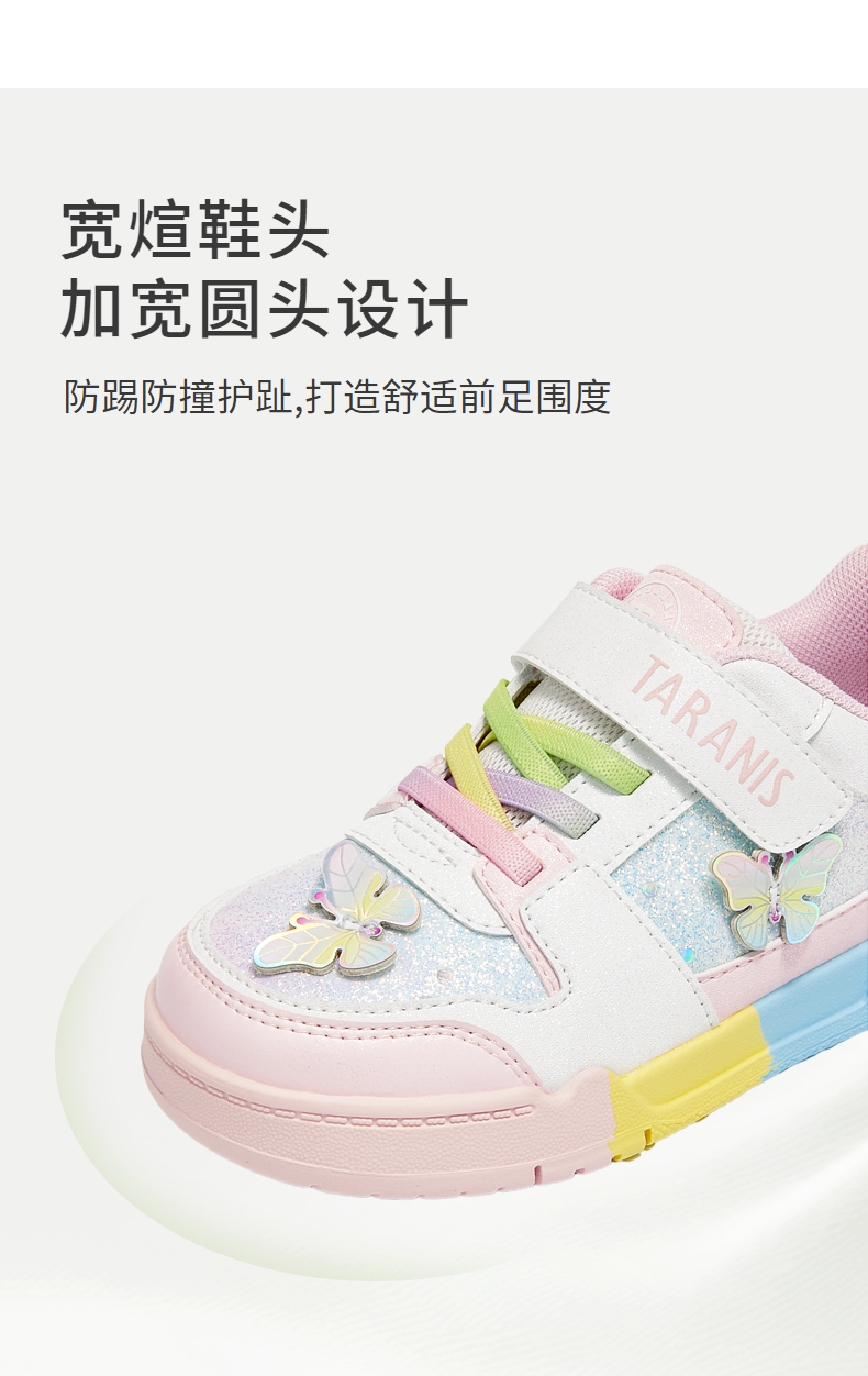 泰兰尼斯春季新款女童板鞋低帮运动鞋轻便幼儿园鞋防滑软底休闲鞋 T02X5A5862