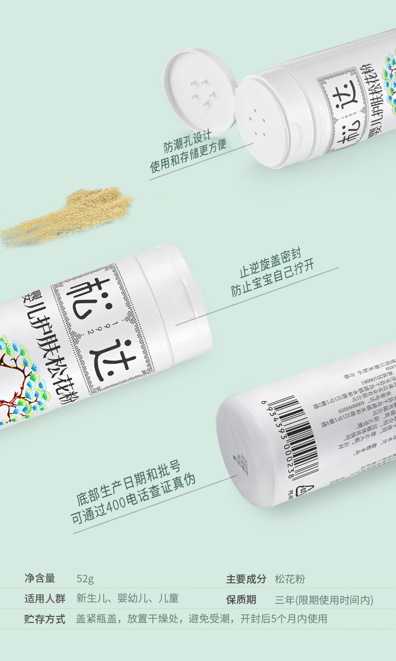 松达婴儿护肤松花粉 祛痱粉 爽身粉 52g