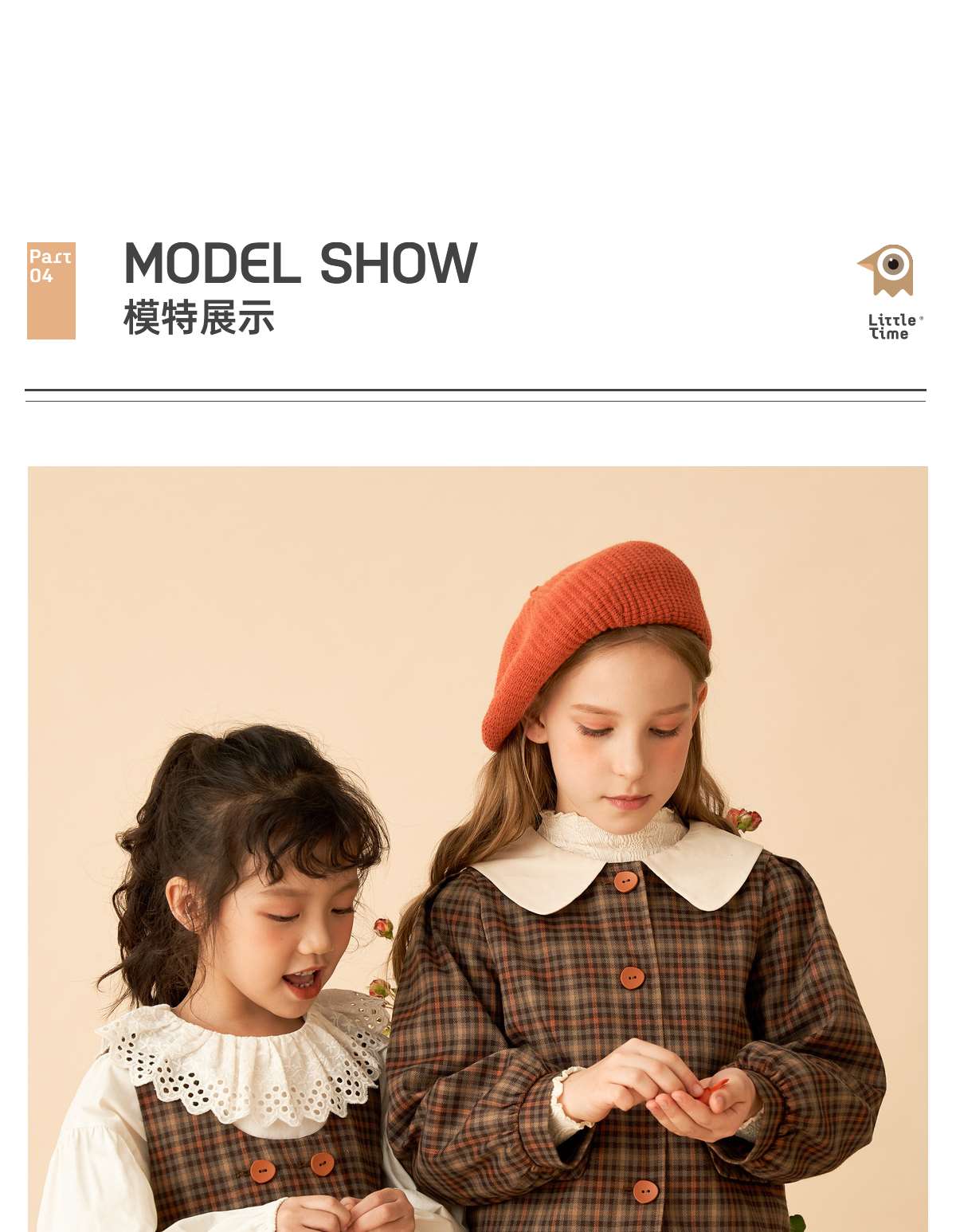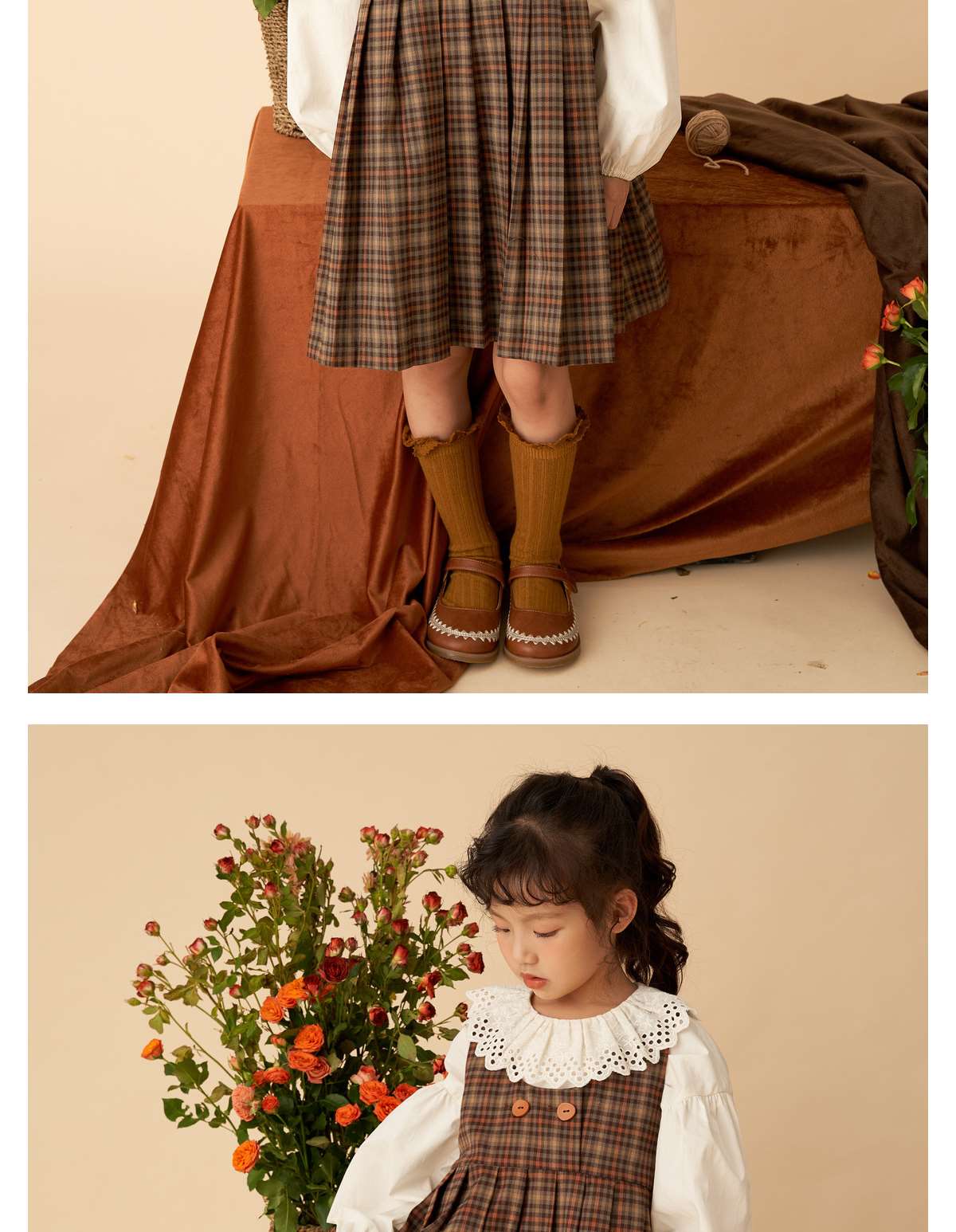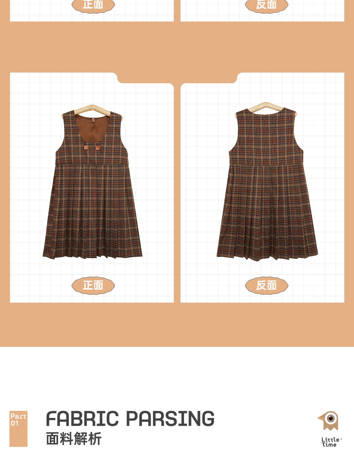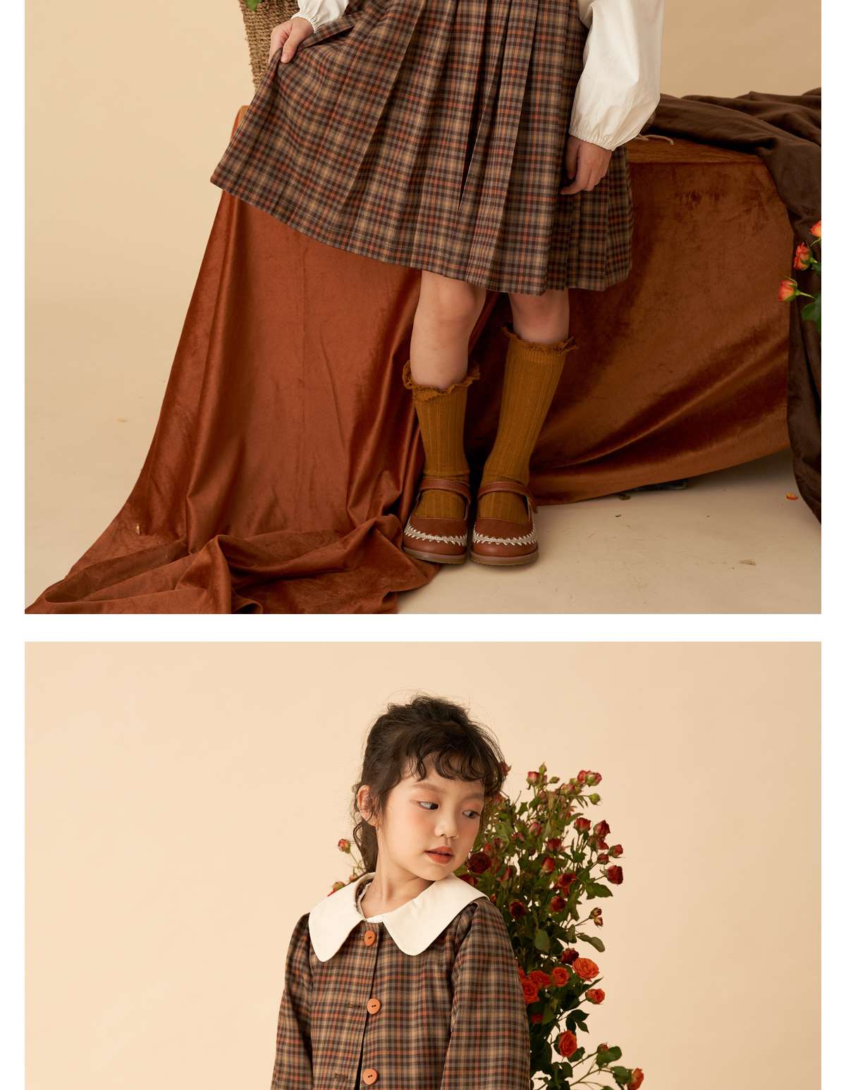 littletime女童复古森系连衣裙套装2022女大童文艺格子开衫两件套
