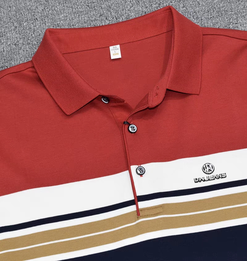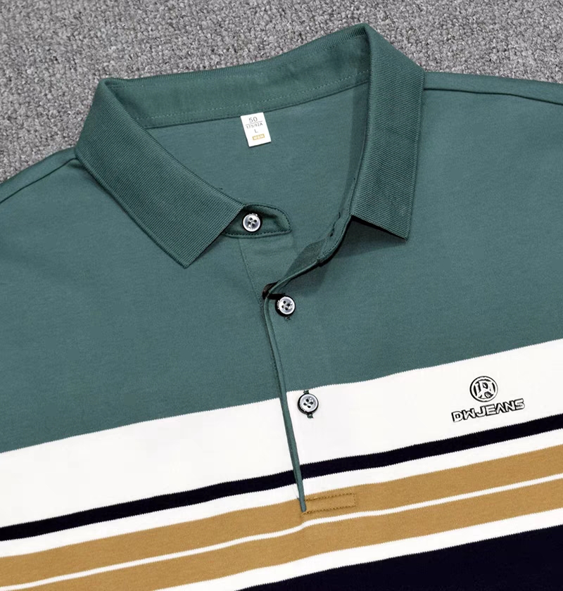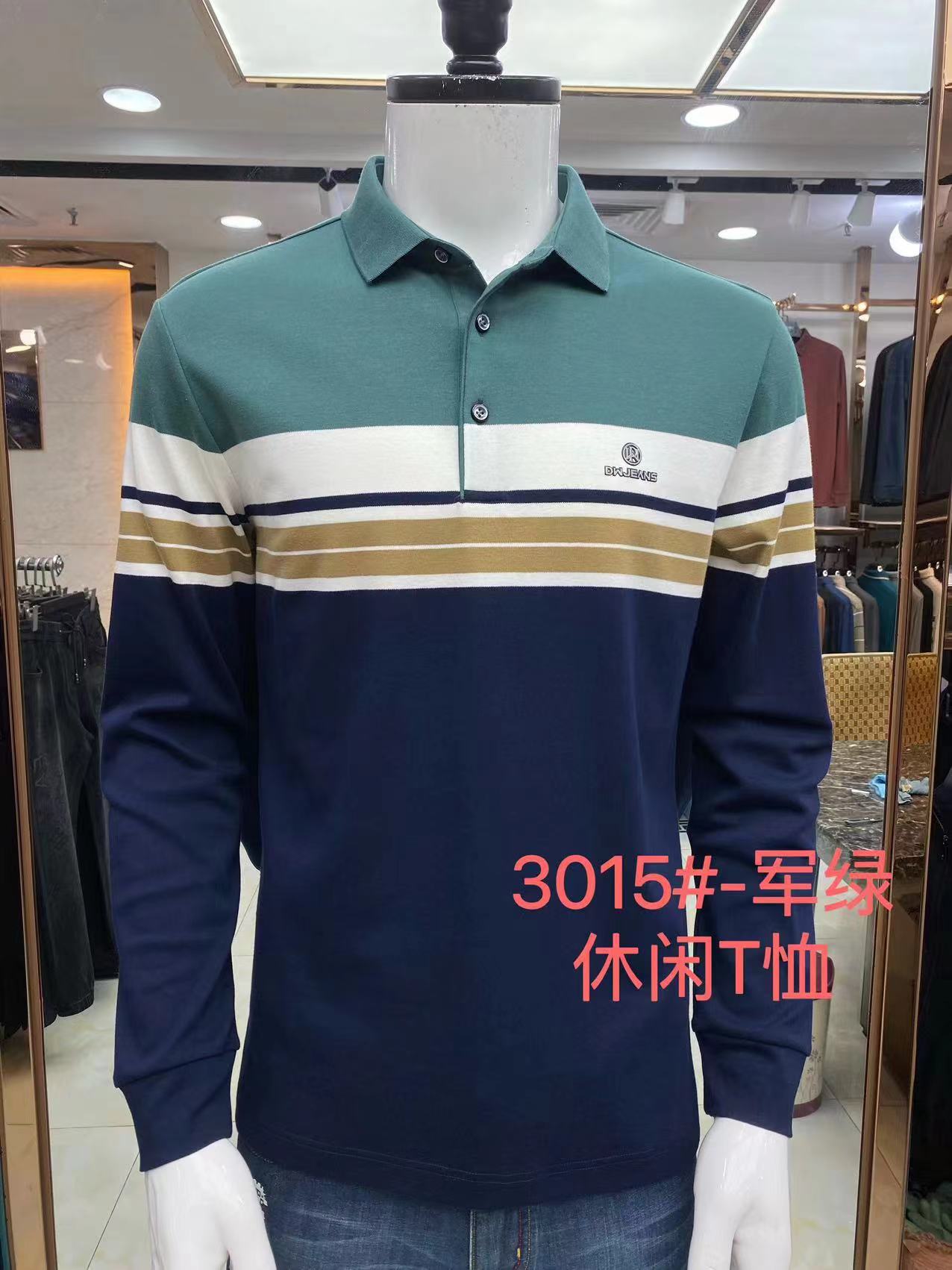 3015# 男装秋装青年翻领长袖T恤纯棉上衣时尚条纹POLO衫 绿色、锈红 M~3XL