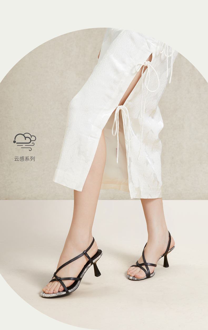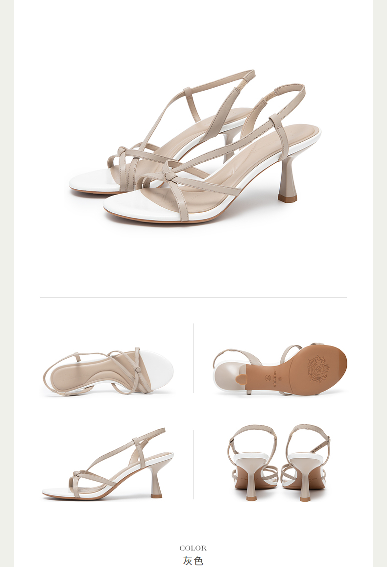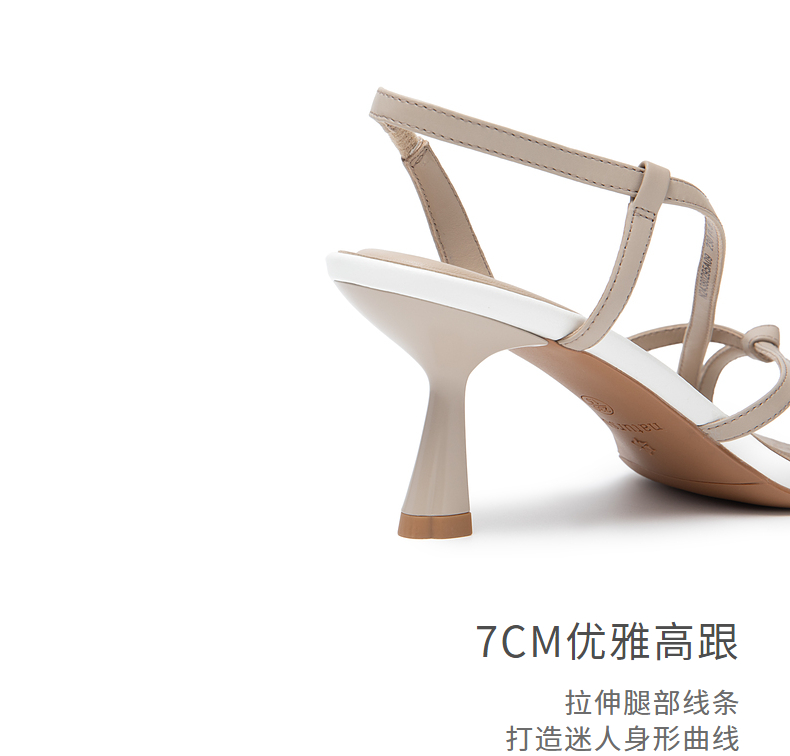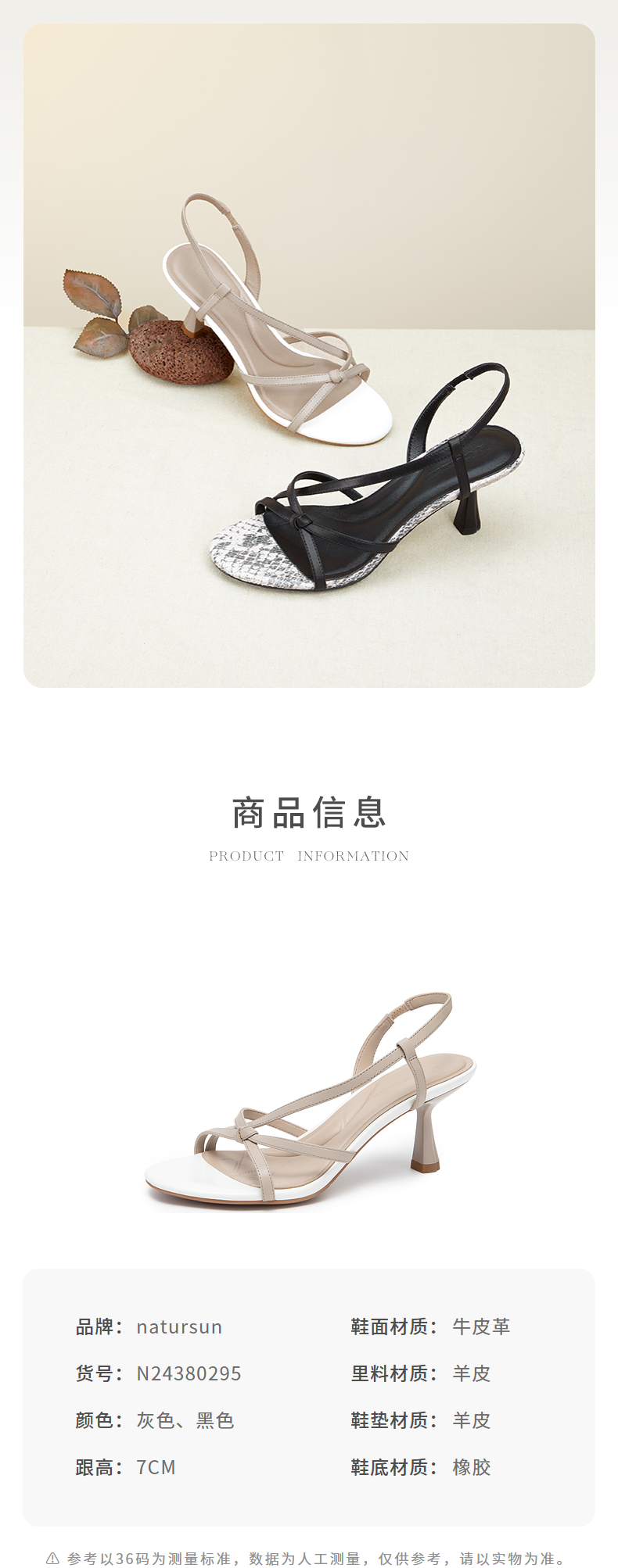 natursun女鞋夏季小羊皮尖头细带凉鞋一字带细高跟单鞋女N24380295