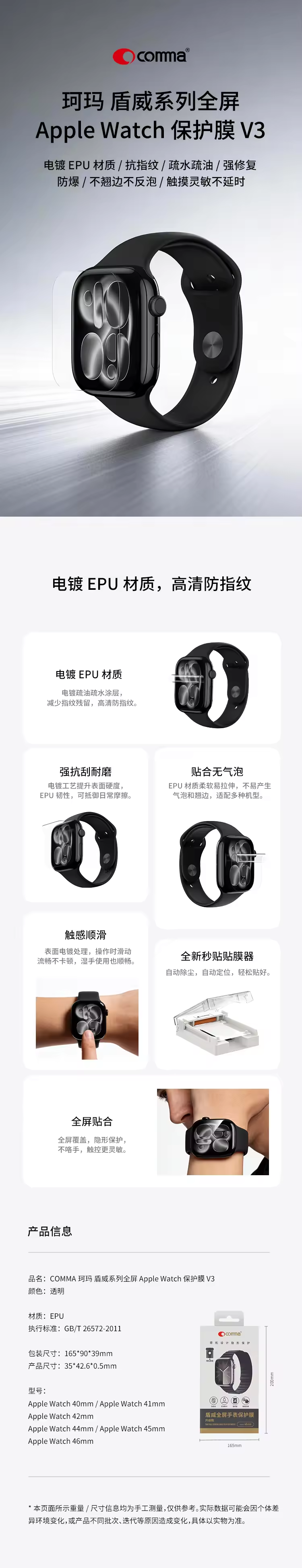 COMMA珂玛 盾威系列全屏 Apple Watch 保护膜 V3
