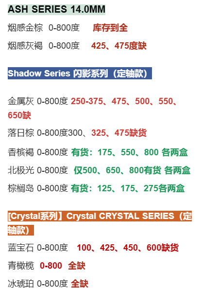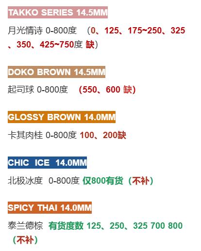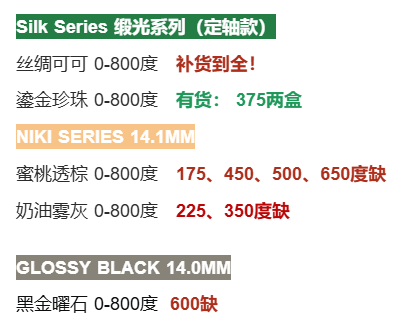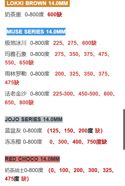 未提及的款式度数暂全