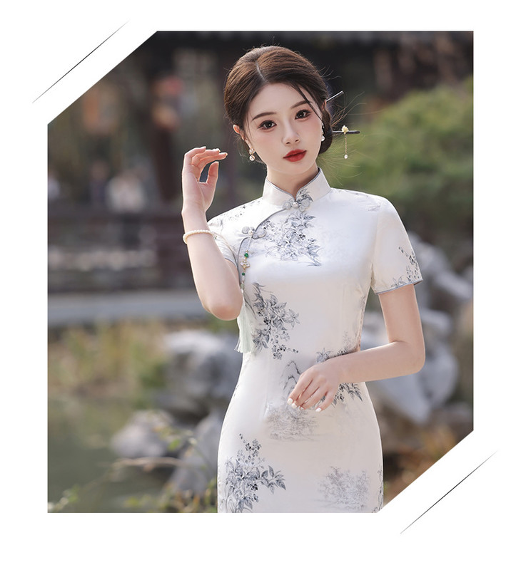 素雅国朝风改良年轻款提花旗袍MLS6856