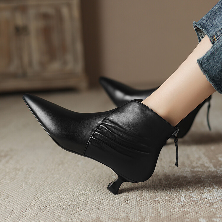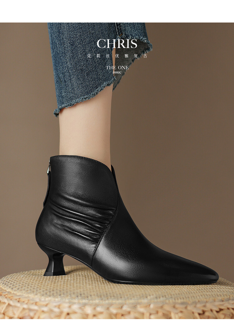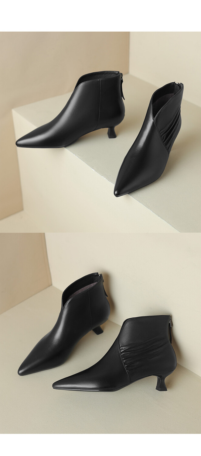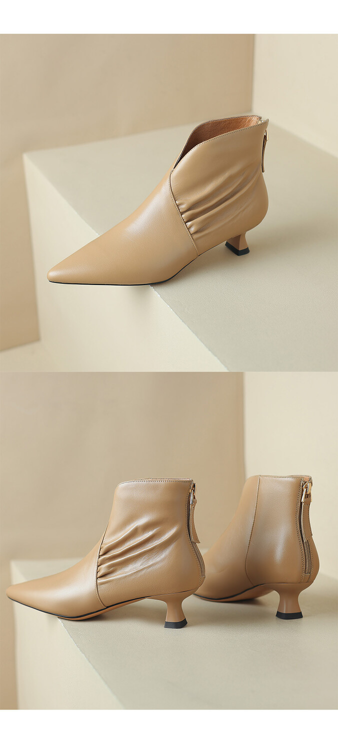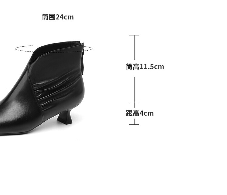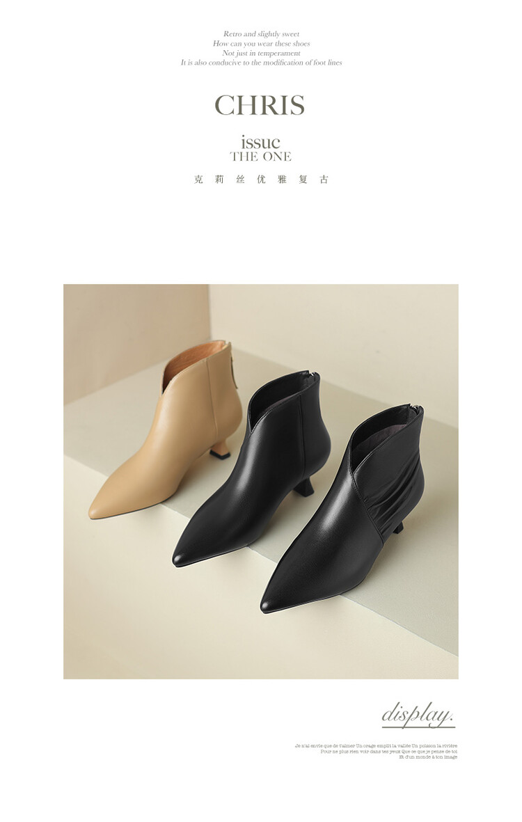 【预售5天】秋冬新款真皮法式小踝靴短靴加绒尖头小众褶皱气质高跟鞋女DB&M5700
