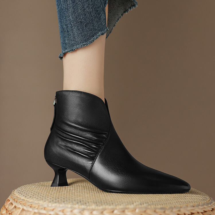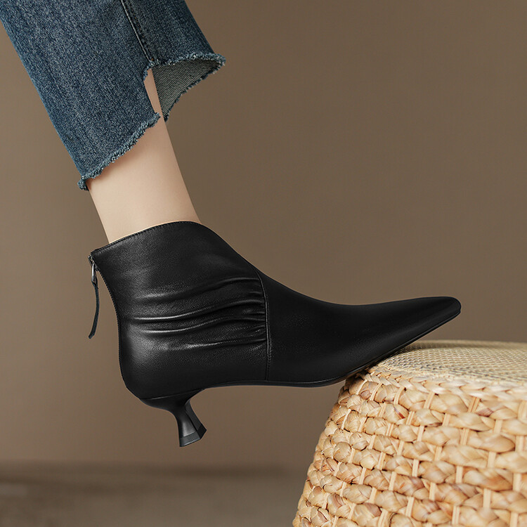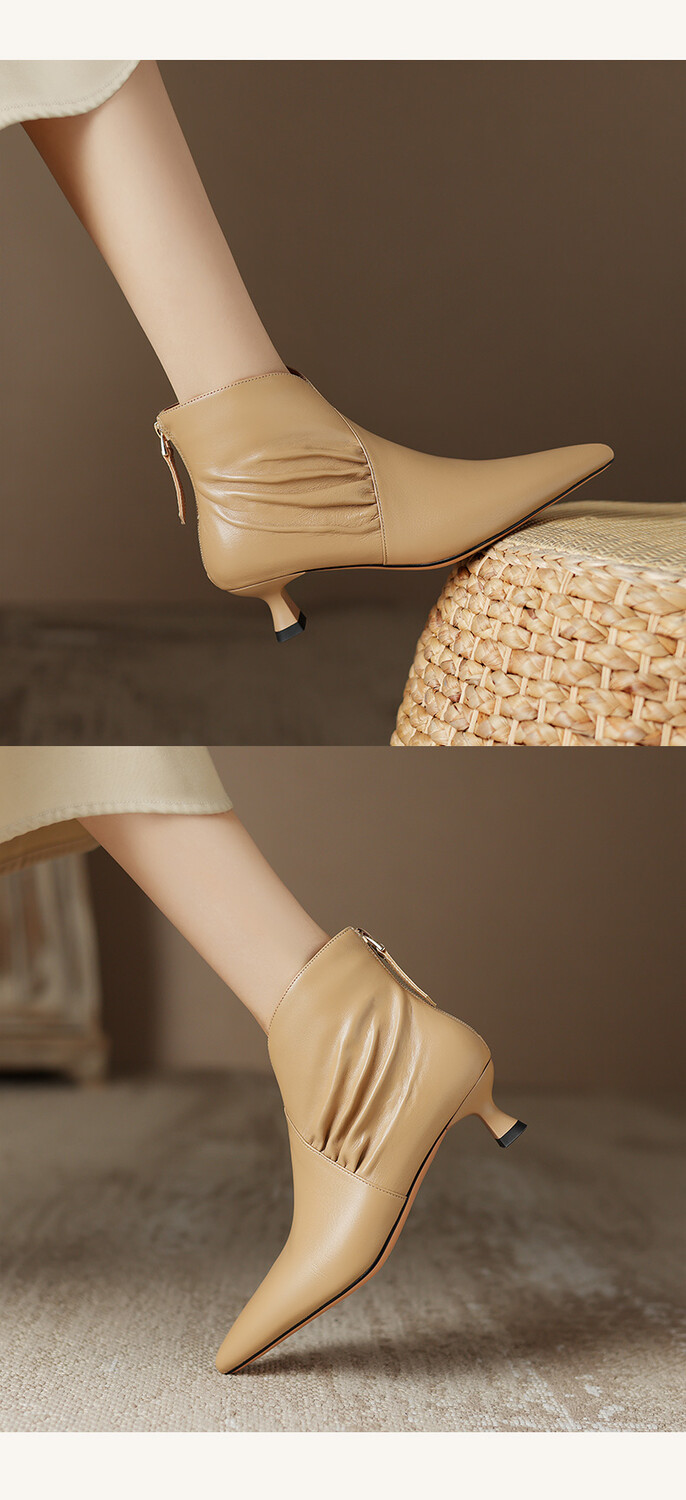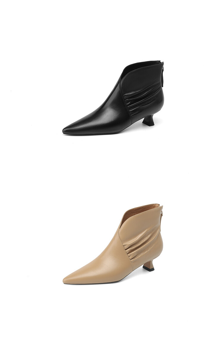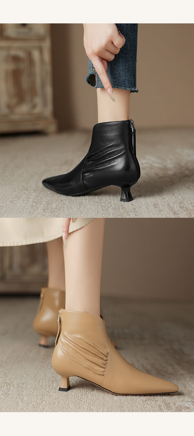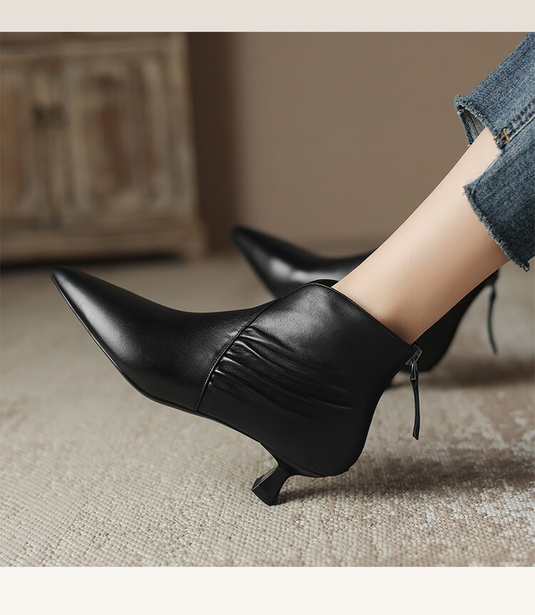 【预售5天】秋冬新款真皮法式小踝靴短靴加绒尖头小众褶皱气质高跟鞋女DB&M5700