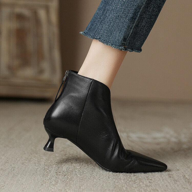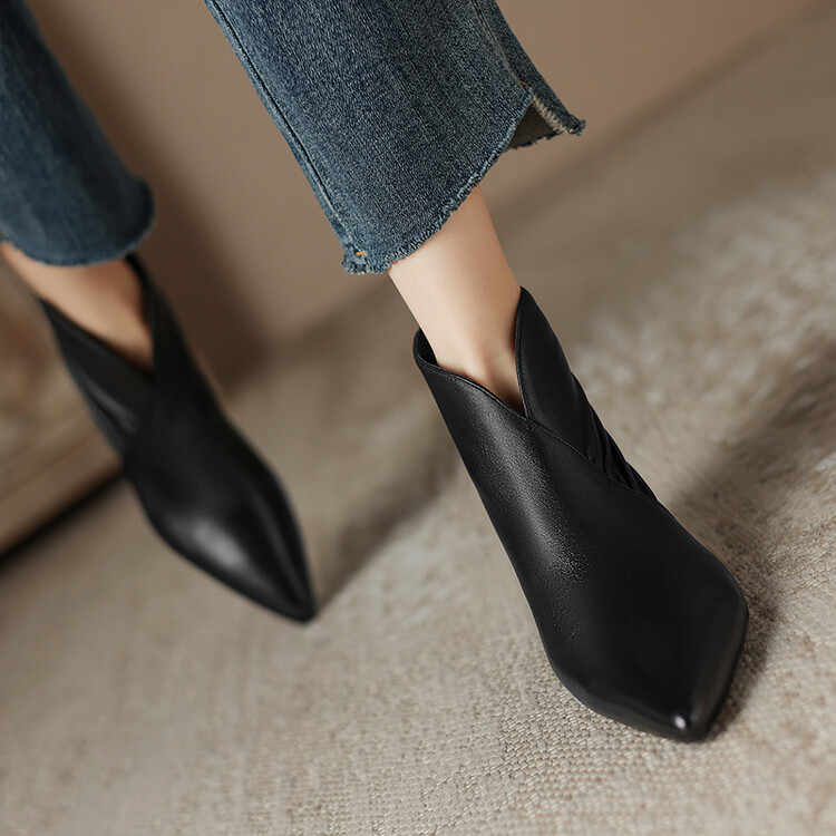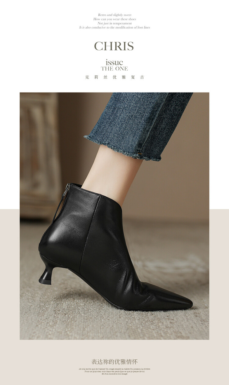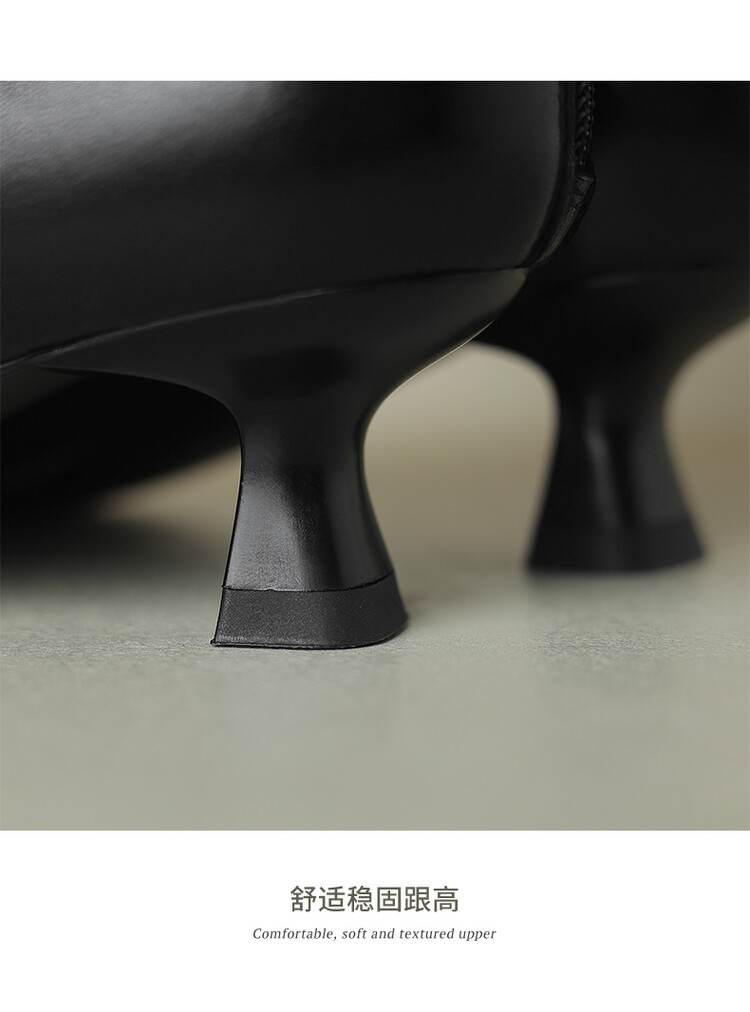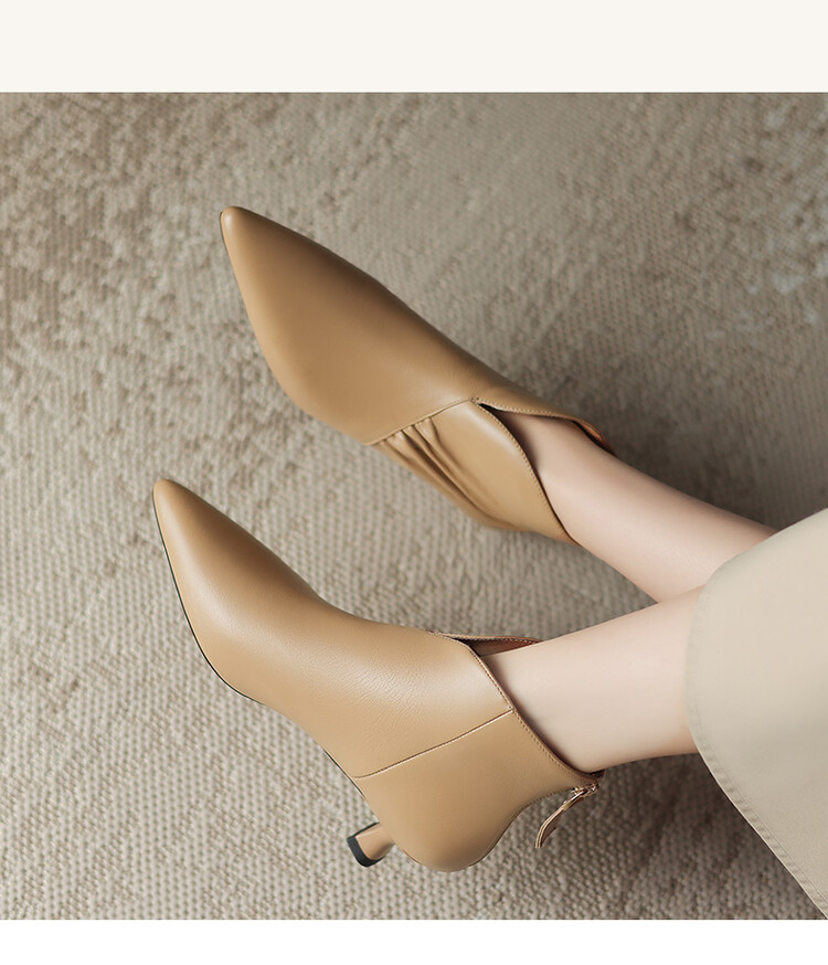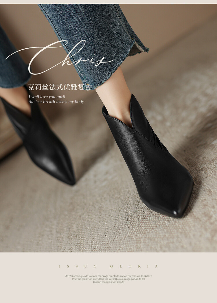 【预售5天】秋冬新款真皮法式小踝靴短靴加绒尖头小众褶皱气质高跟鞋女DB&M5700
