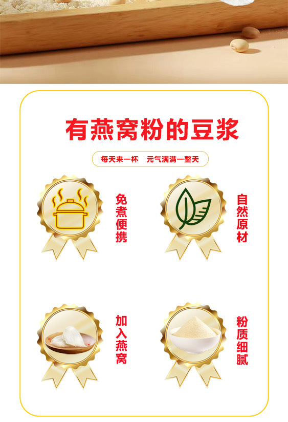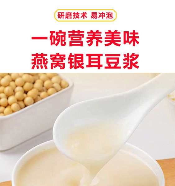 【滋养小时刻!燕窝银耳豆浆粉】配料很坦白,还原本真味道,甄选原料制作,不单独添加蔗糖,豆浆黄豆粉速溶早餐豆浆代餐