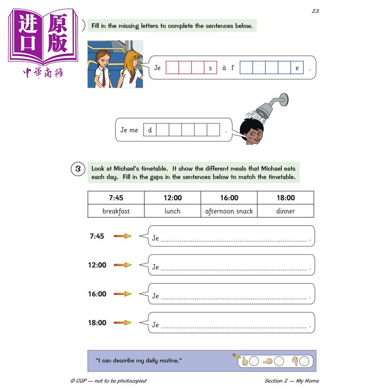 第二学段法语练习从未如此出色。 这本年度练习册专门针对希望提高法语水平的四年级学生。 它充满了有用的词汇和学习笔记,以及大量的技能提升活动和问题,所有这些都为 8 至 9 岁的学生提供了难度。 自我评估框用于跟踪学生的进步。