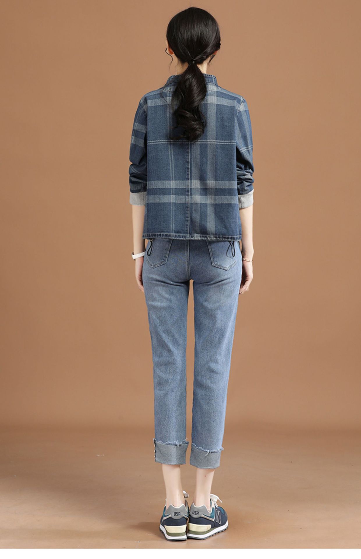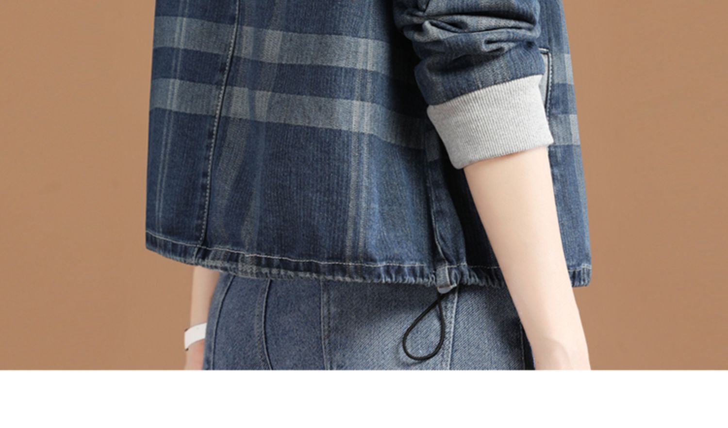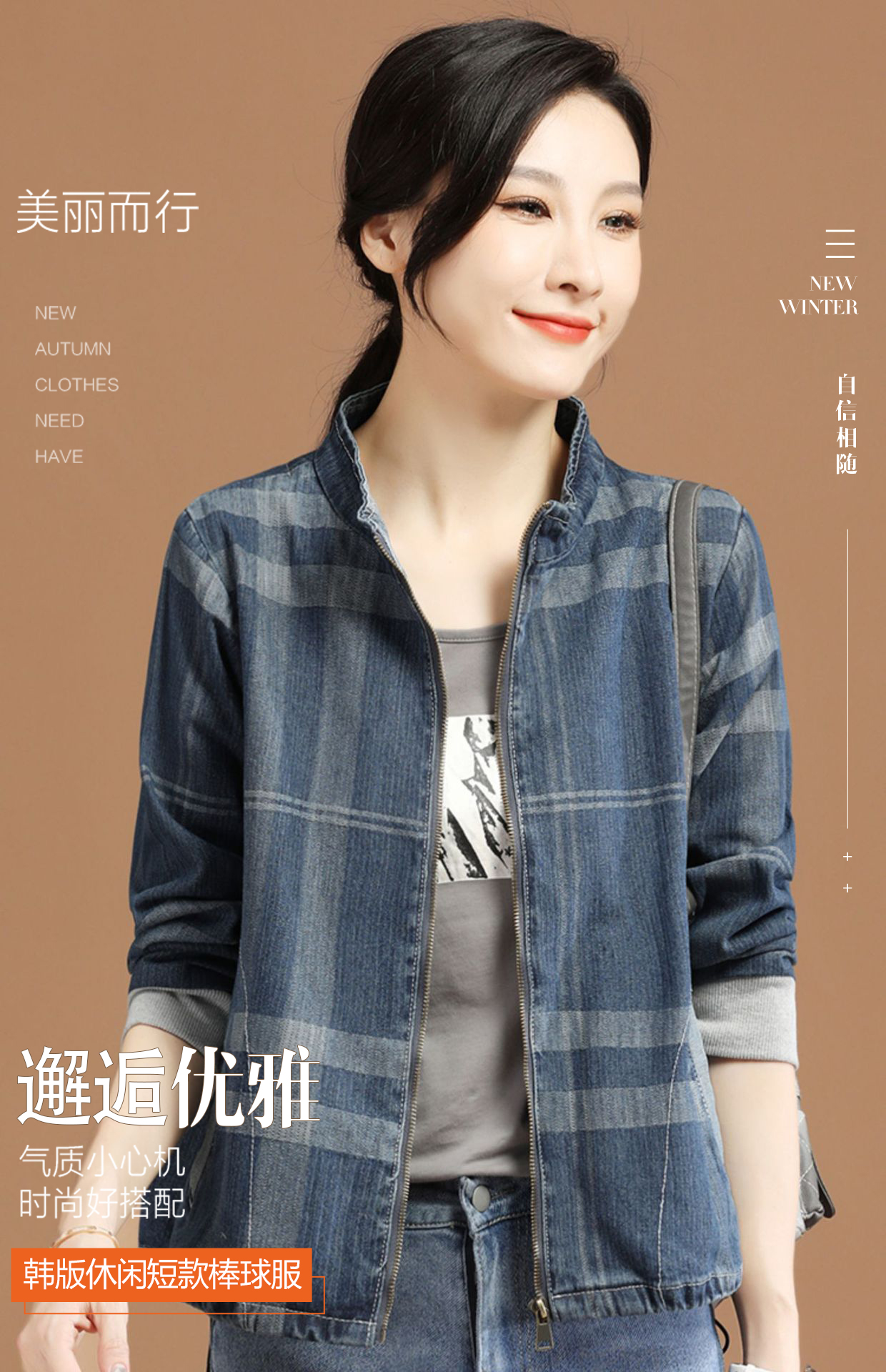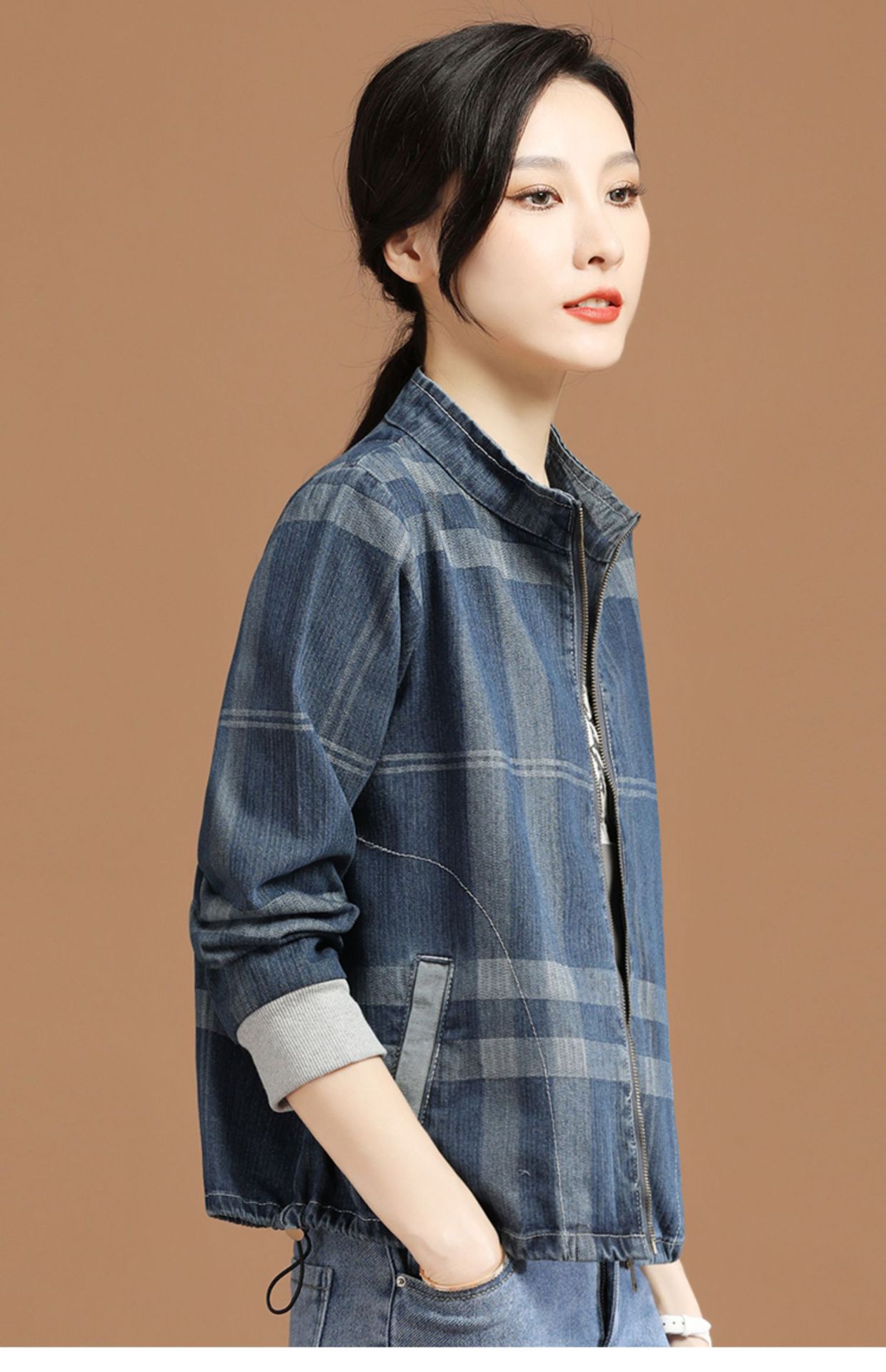 立领格子百搭牛仔外套女2022年春装新款韩版休闲短款棒球服 GYM-D1533