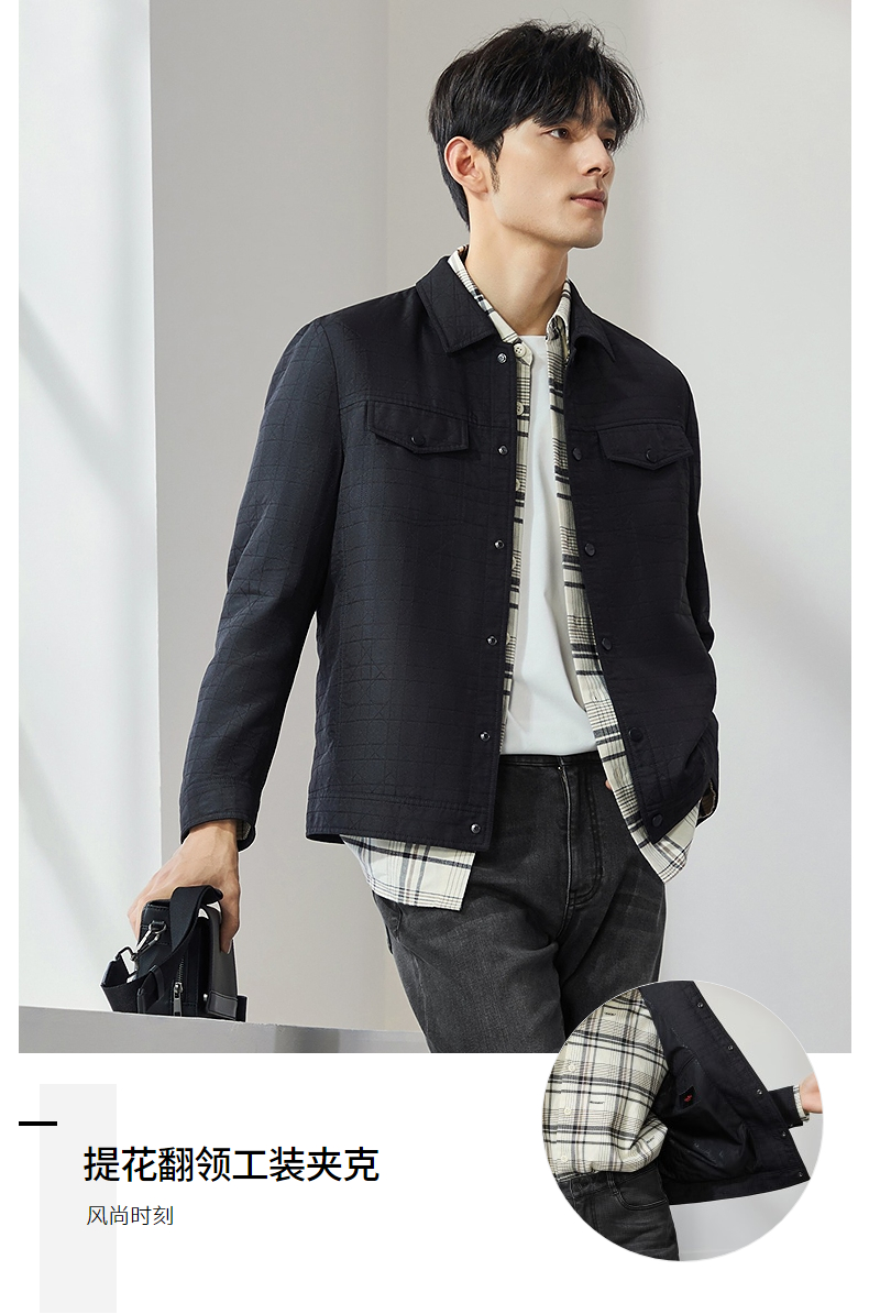柒牌男装翻领夹克男2024秋冬新款时尚潮流工装风休闲百搭男士外套 127K70280