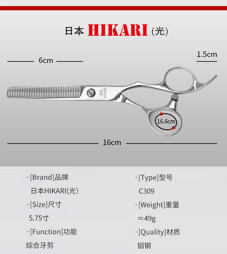HIKARI牙剪C309 牙剪/综合牙剪/打薄剪/去发量20-25%/ 30根齿/V齿正刃/6寸