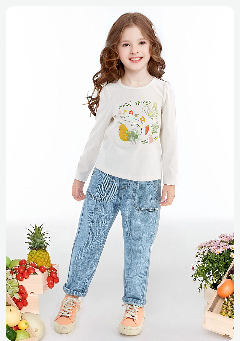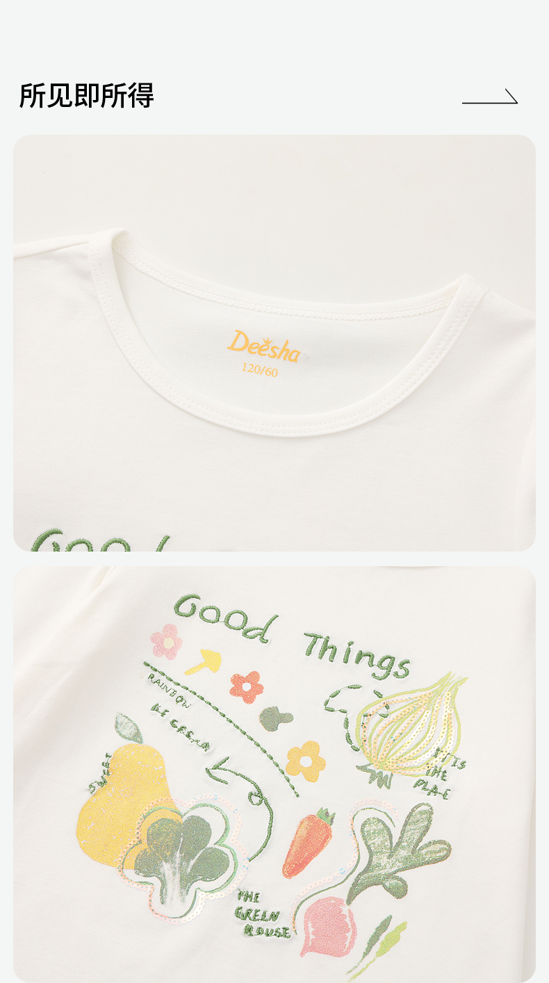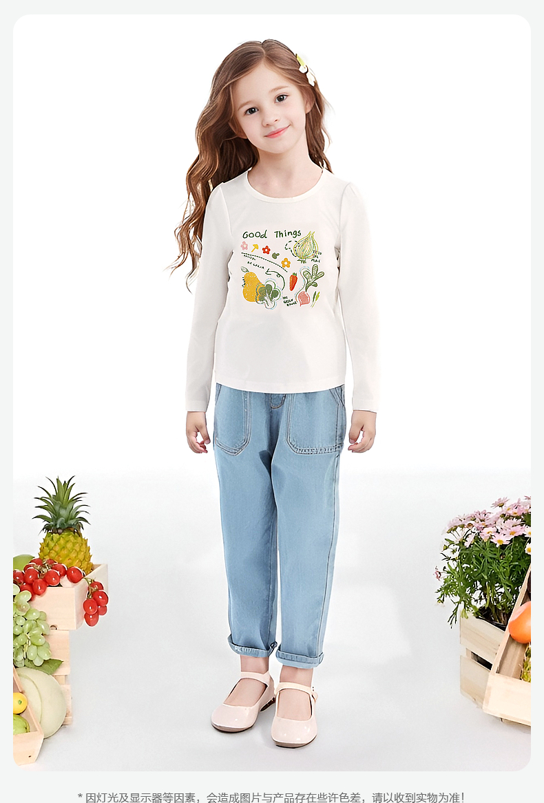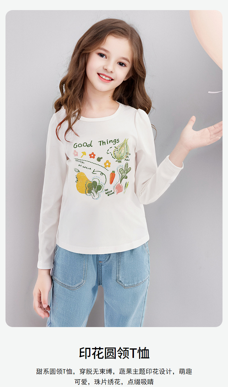 笛莎Deesha 童装女童T恤2024秋季印花圆领T恤