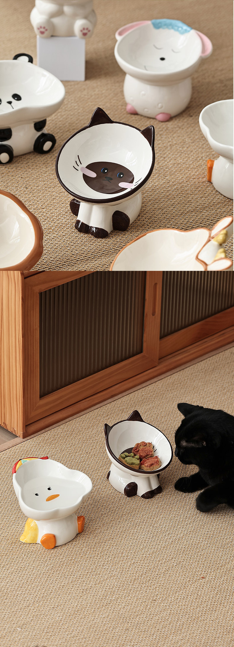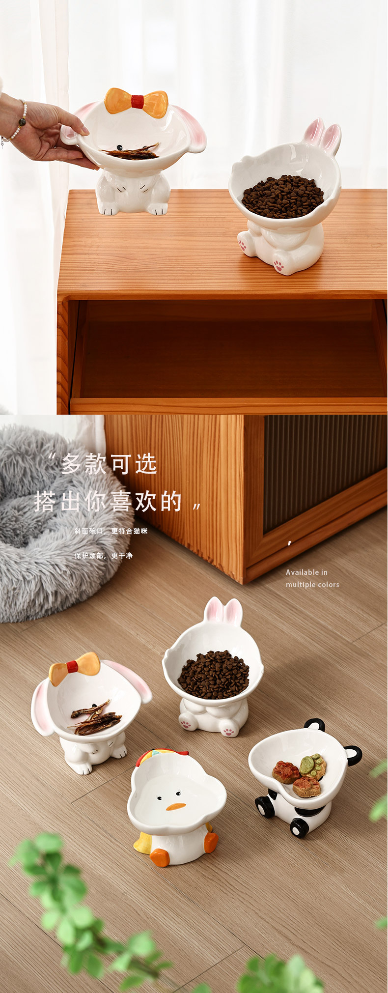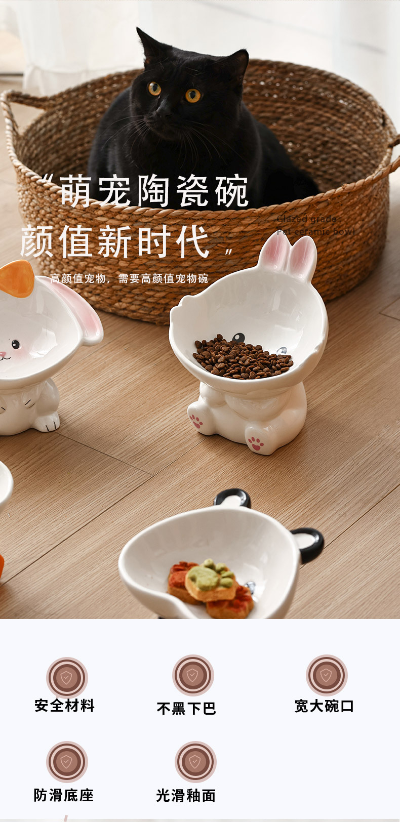 【斜口设计护颈椎,加宽碗底防打翻】猫碗陶瓷保护颈椎饮水碗宠物用品可爱斜口防打翻狗狗饭碗猫咪食盆.TA