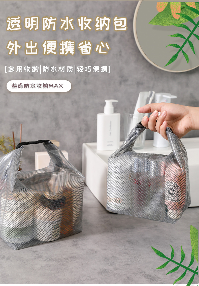 【透明防水收纳包!外出便携省心】透明防水洗漱包高颜值化妆包多用途便携式手提大容量伸缩游泳袋。ry