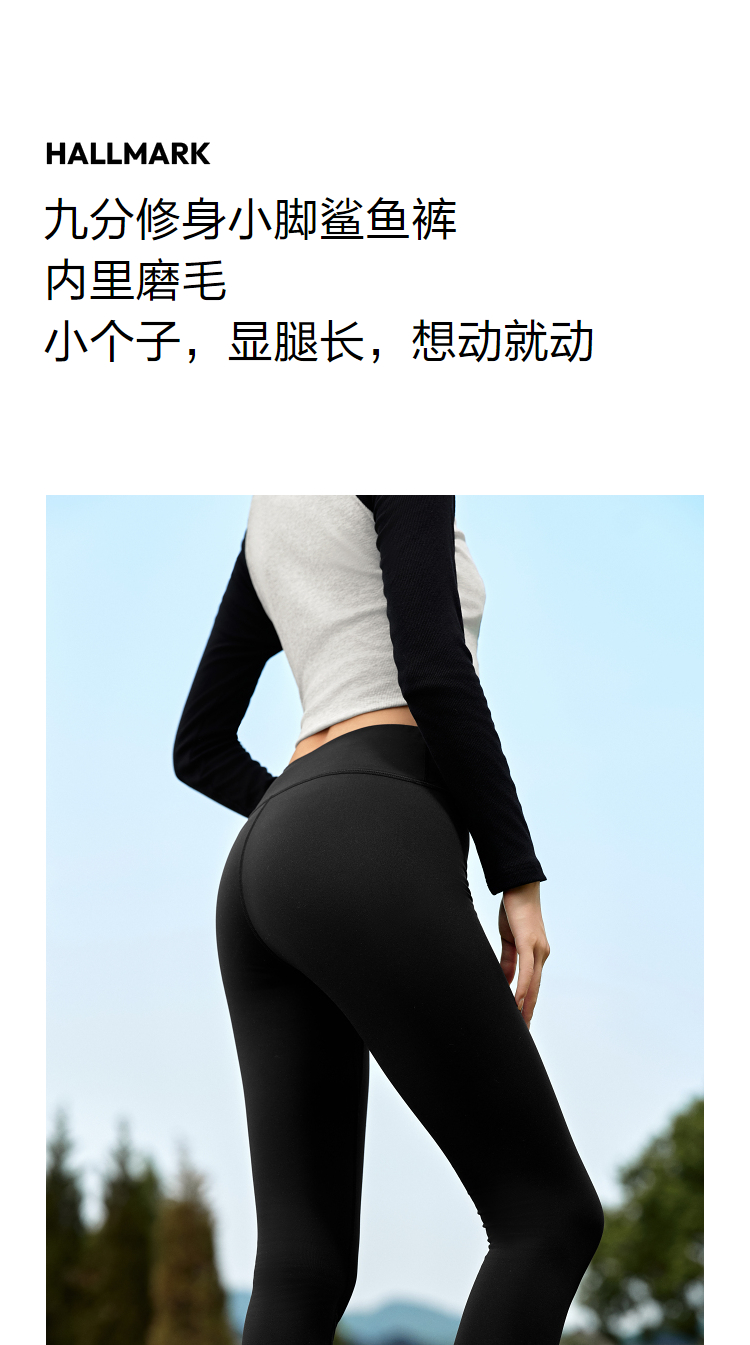 森马休闲裤女修身磨毛小脚裤秋季新款显腿长九分鲨鱼裤小个子