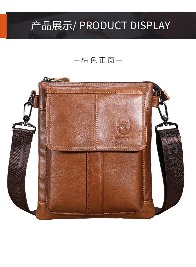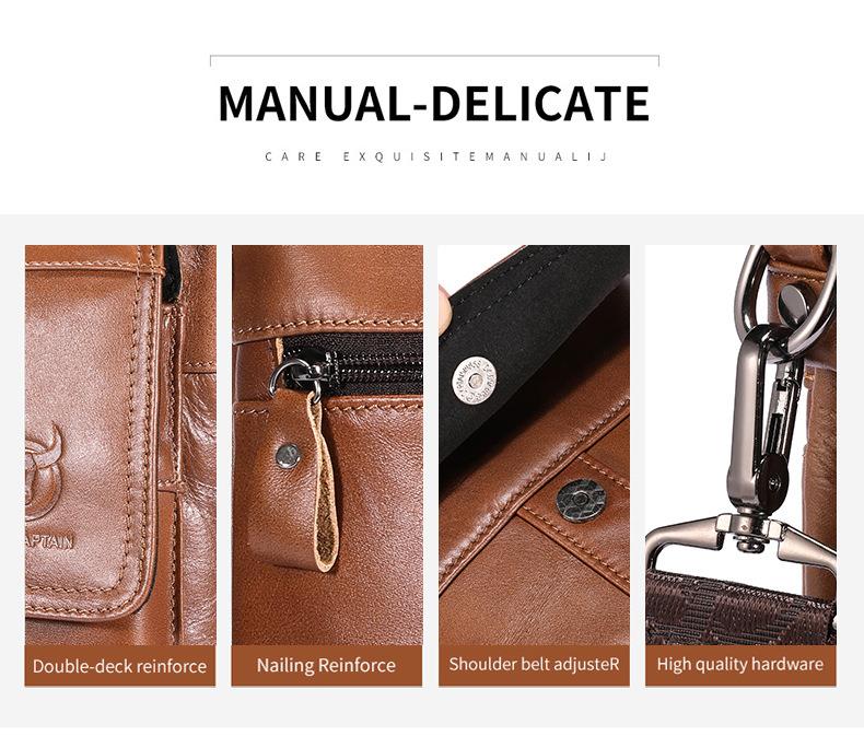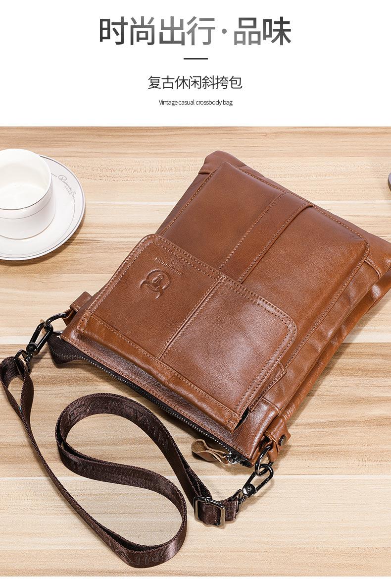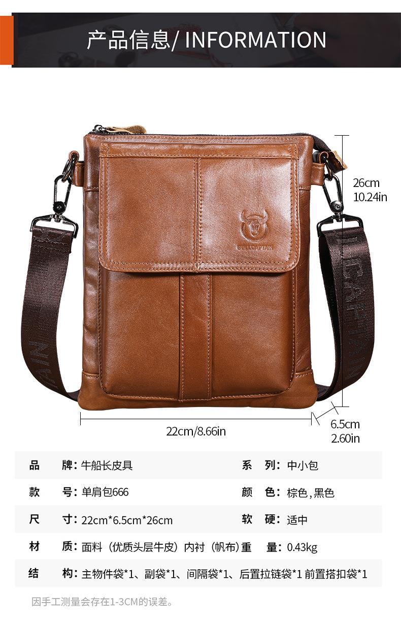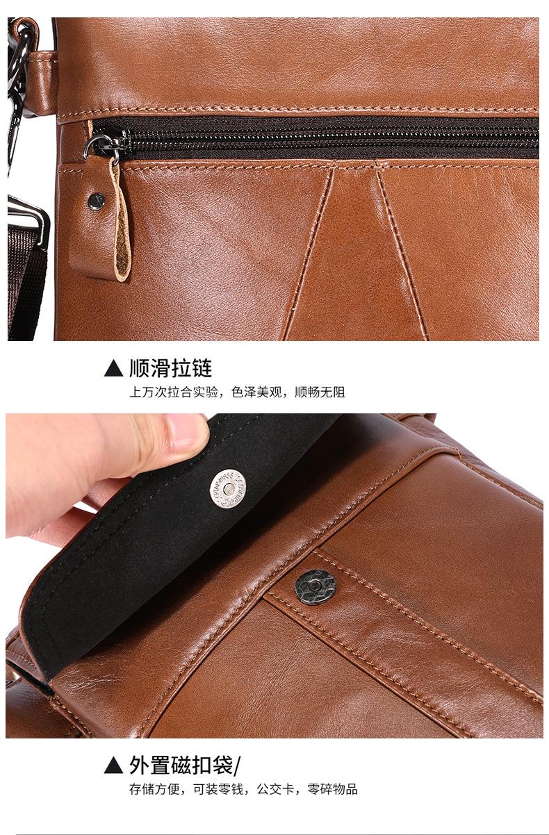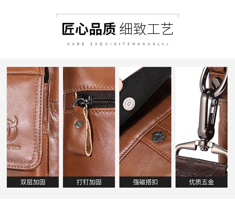 牛船长皮具跨境专供男士单肩斜挎包头层牛皮复古大容量多功能挎包