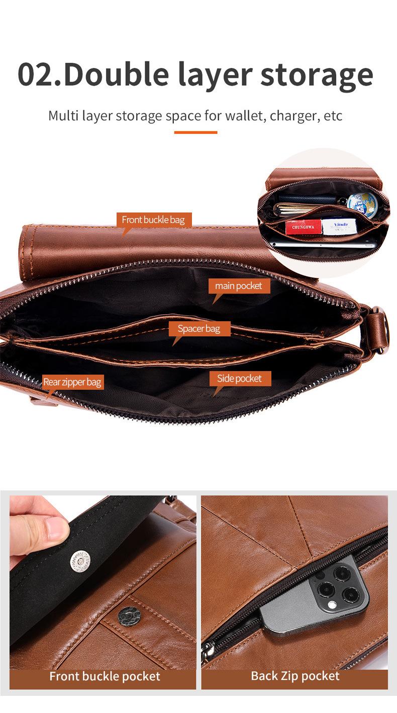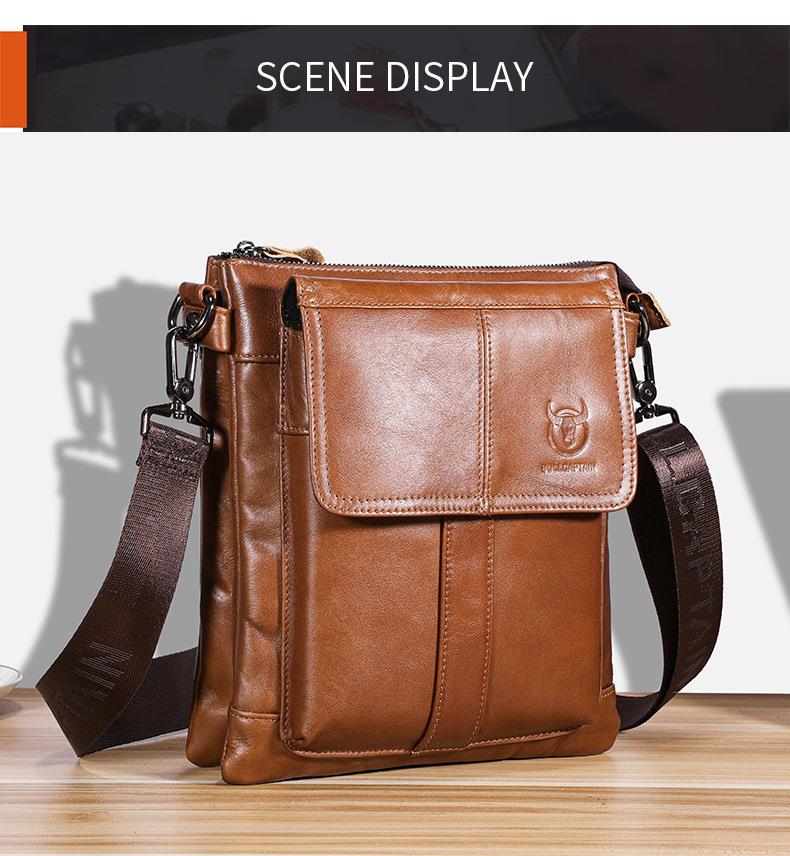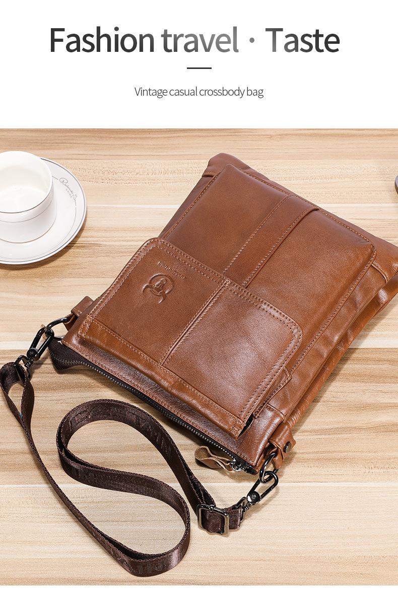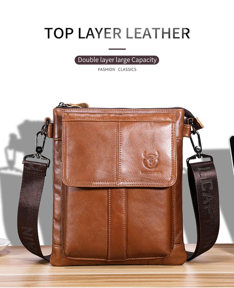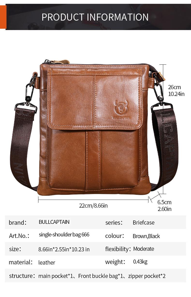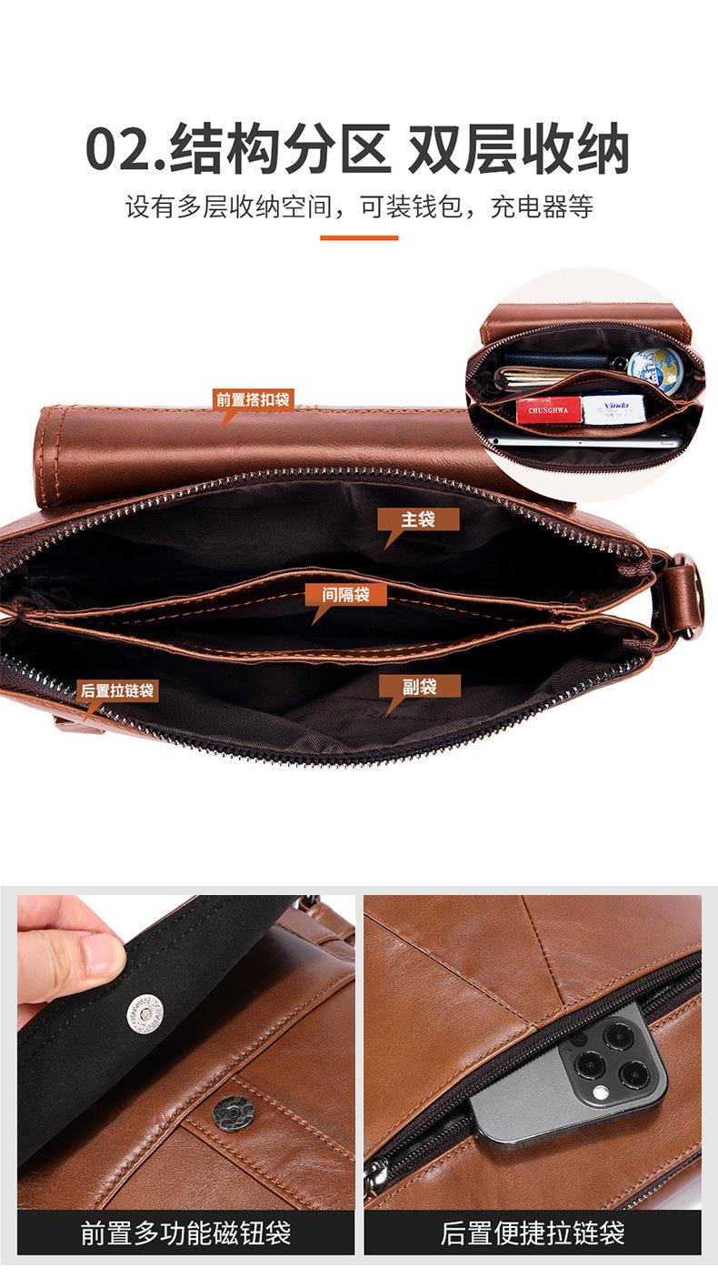 牛船长皮具跨境专供男士单肩斜挎包头层牛皮复古大容量多功能挎包