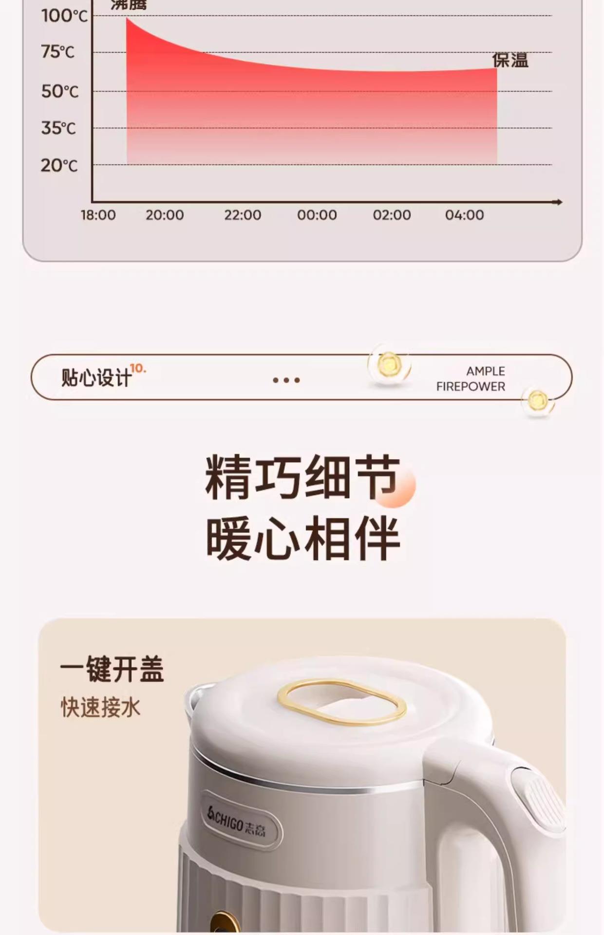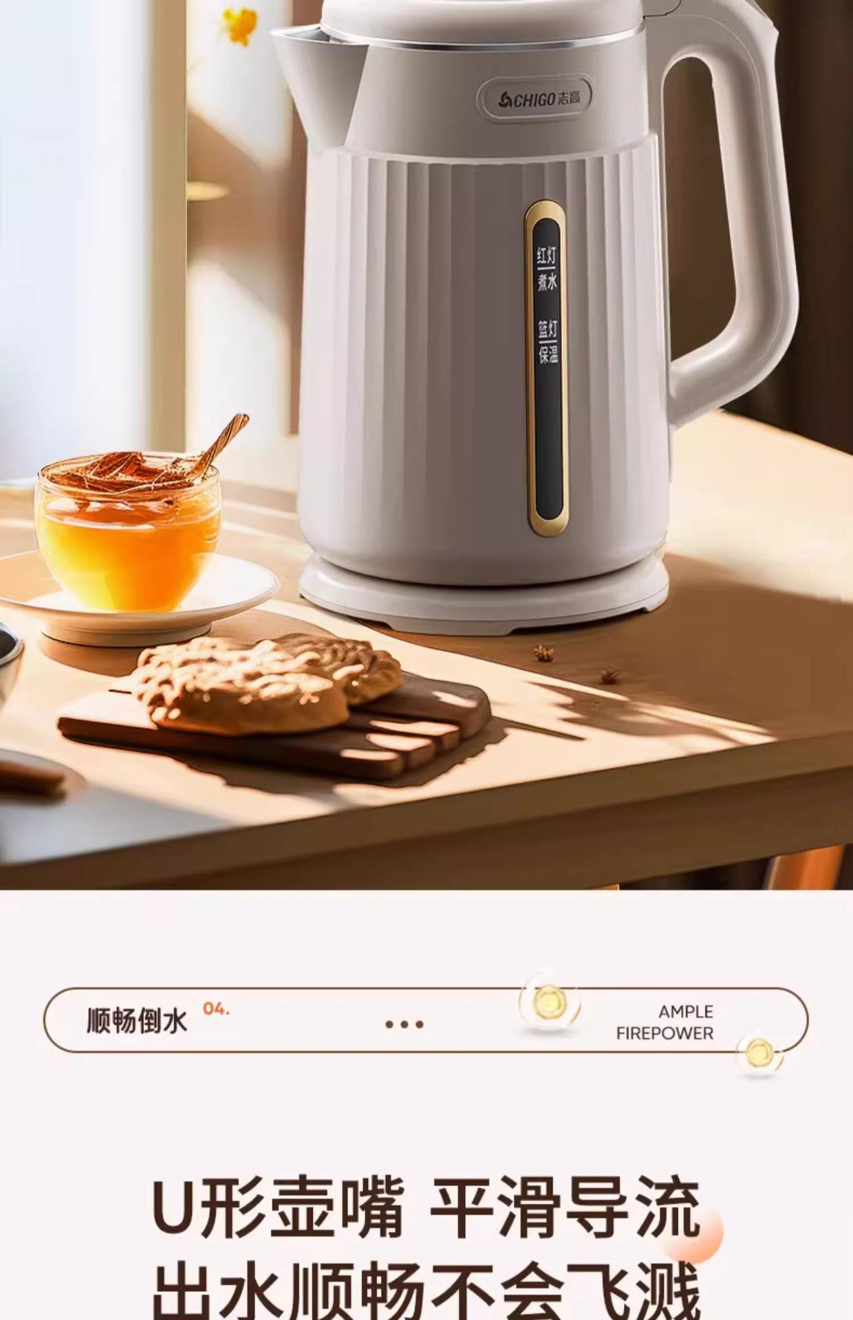 志高电热水壶家用不锈钢电热保温一体烧水壶自动断电大容量开水壶